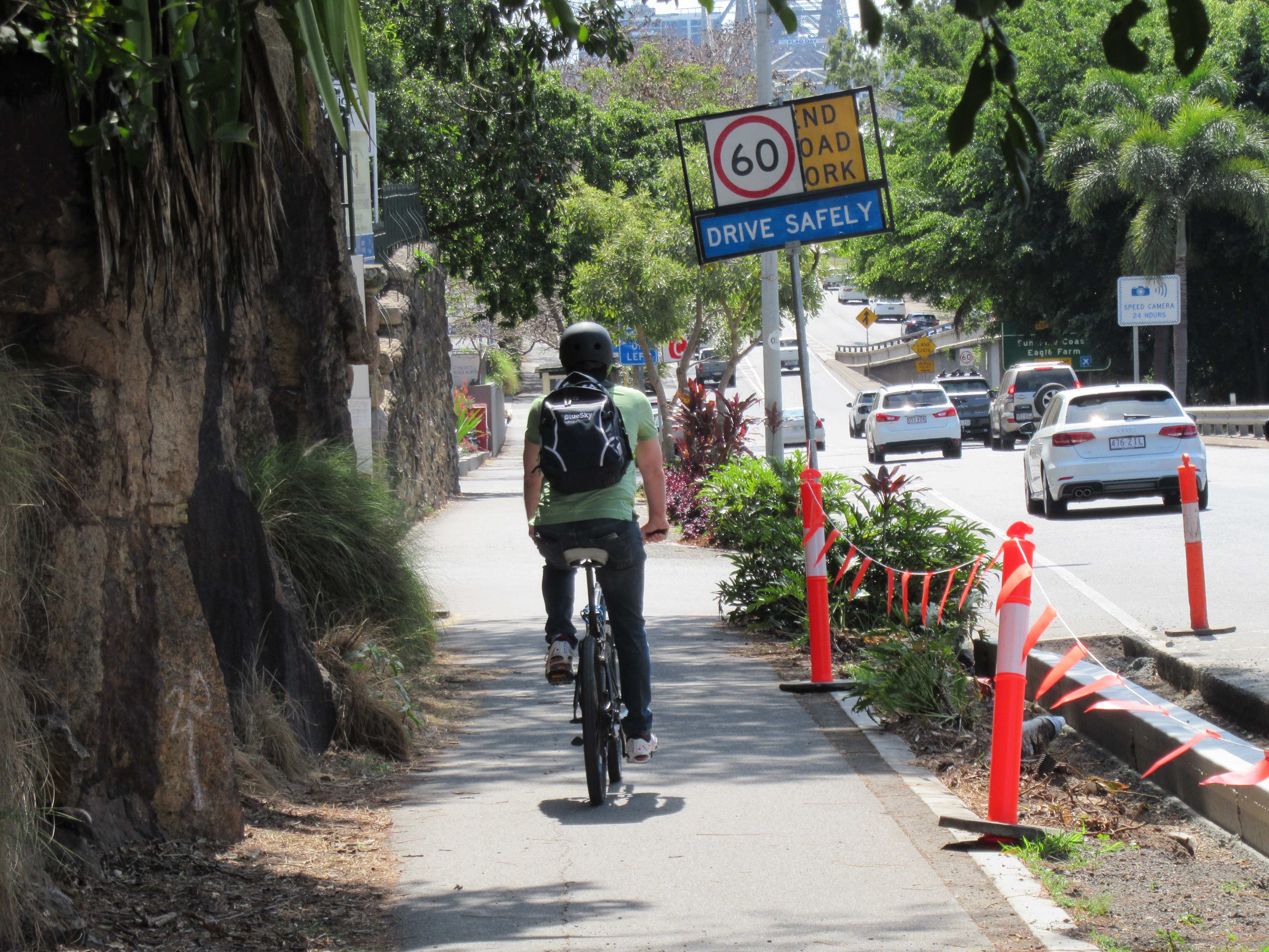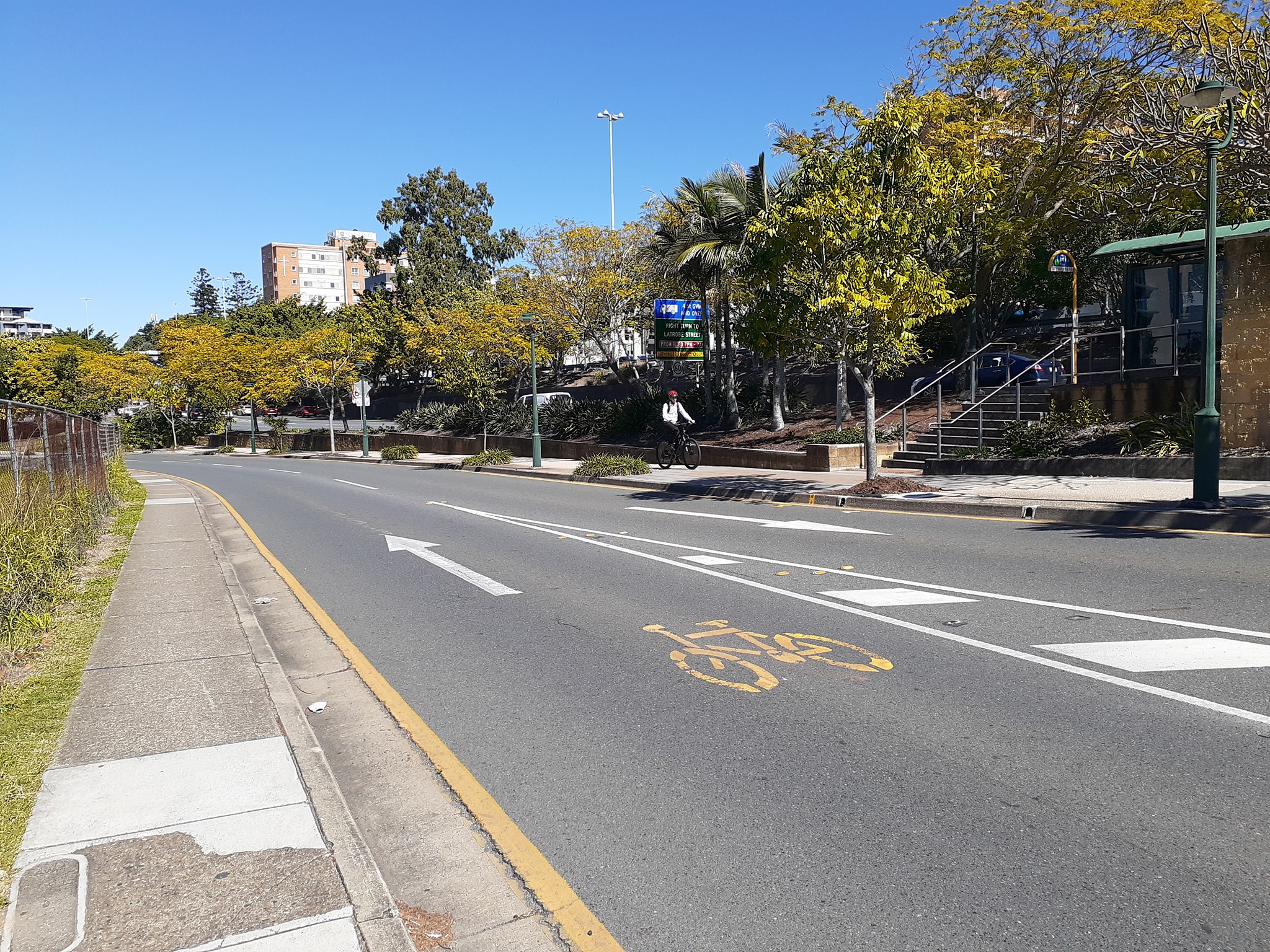For local Kangaroo Point residents, continuing a high-quality path south, up Main St is vital. This path is already busy with people walking, cycling, and on e-scooters, but is cluttered and narrow in places. We’re happy that it is being widened to 2.5m near the intersection with River Terrace, thanks to $1.15million in funding from the Queensland Government’s COVID-Safe Works for Queensland program – however we note that 2.5m is the absolute minimum wide for a shared path under the AustRoads standards, and we doubt this path would fit the criteria of “low-use” even now, before the new green bridge is built.