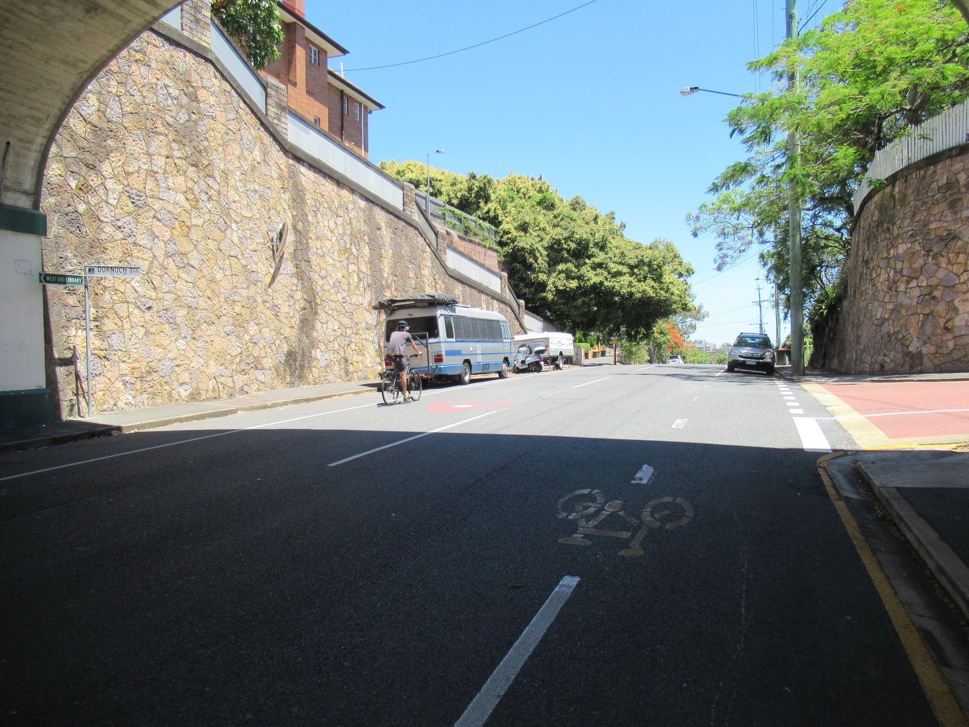 Boundary St is steep; it is a tough ride up from the river to the proposed bridge landing. It’s also a long, steep ride or walk from the commercial precinct on Boundary St, and there’s no good connection to Dornoch Tce which is the main east-west cycling route.