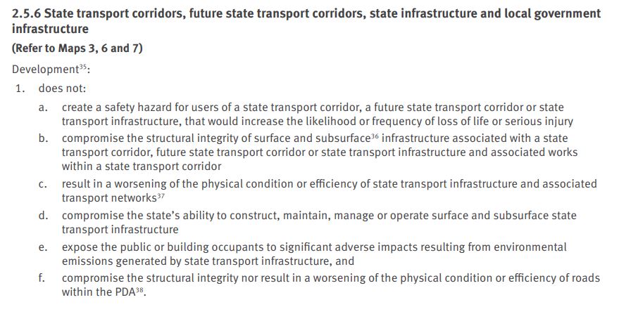 “As discussed earlier [where?], amendments have been made to include reference to protection of local government transport and road corridors and a new item has been added at section 2.5.6. These are considered adequate to protect roads within the PDA and the SDAP protecting state transport corridors. No amendment necessary.”