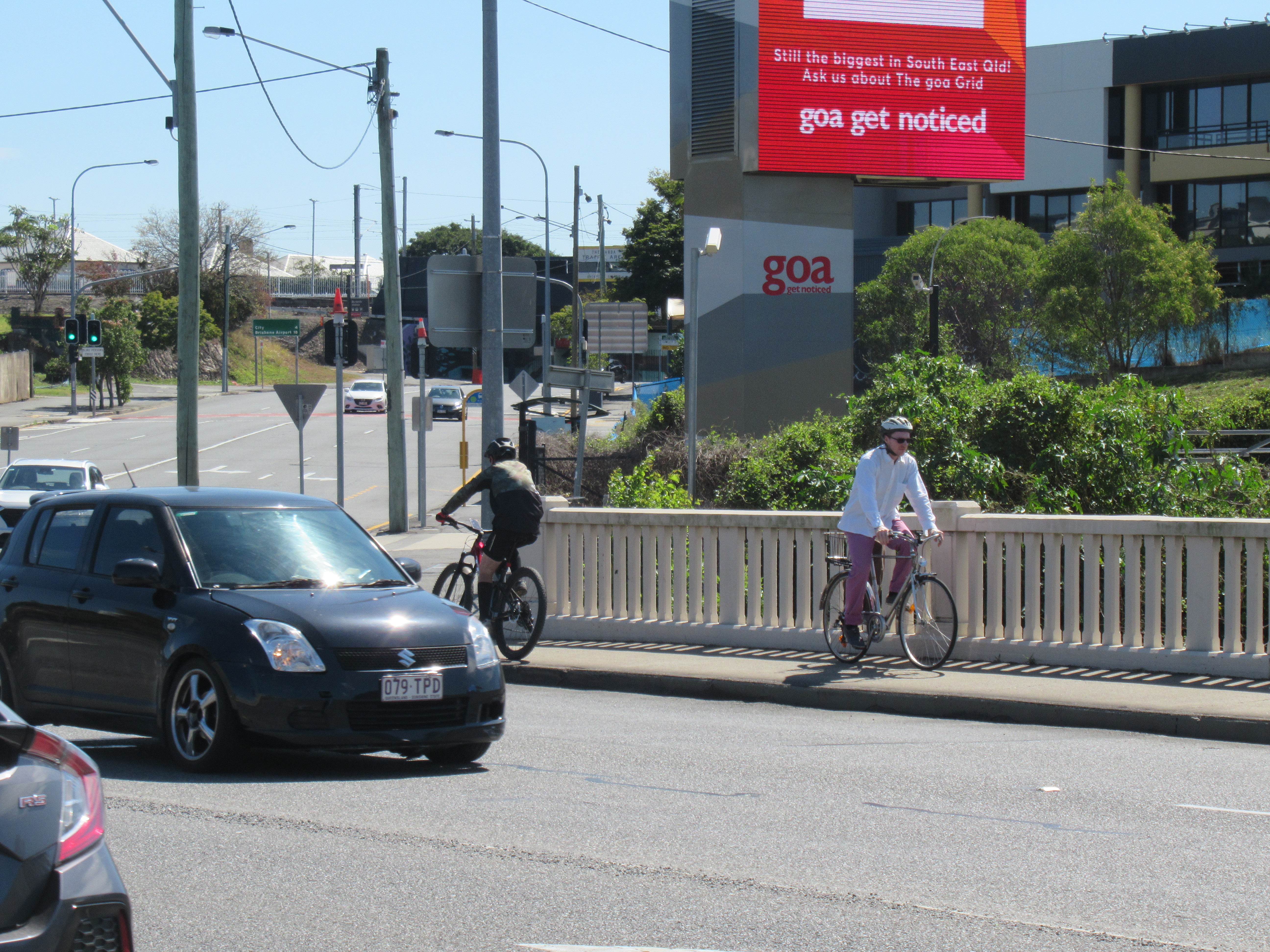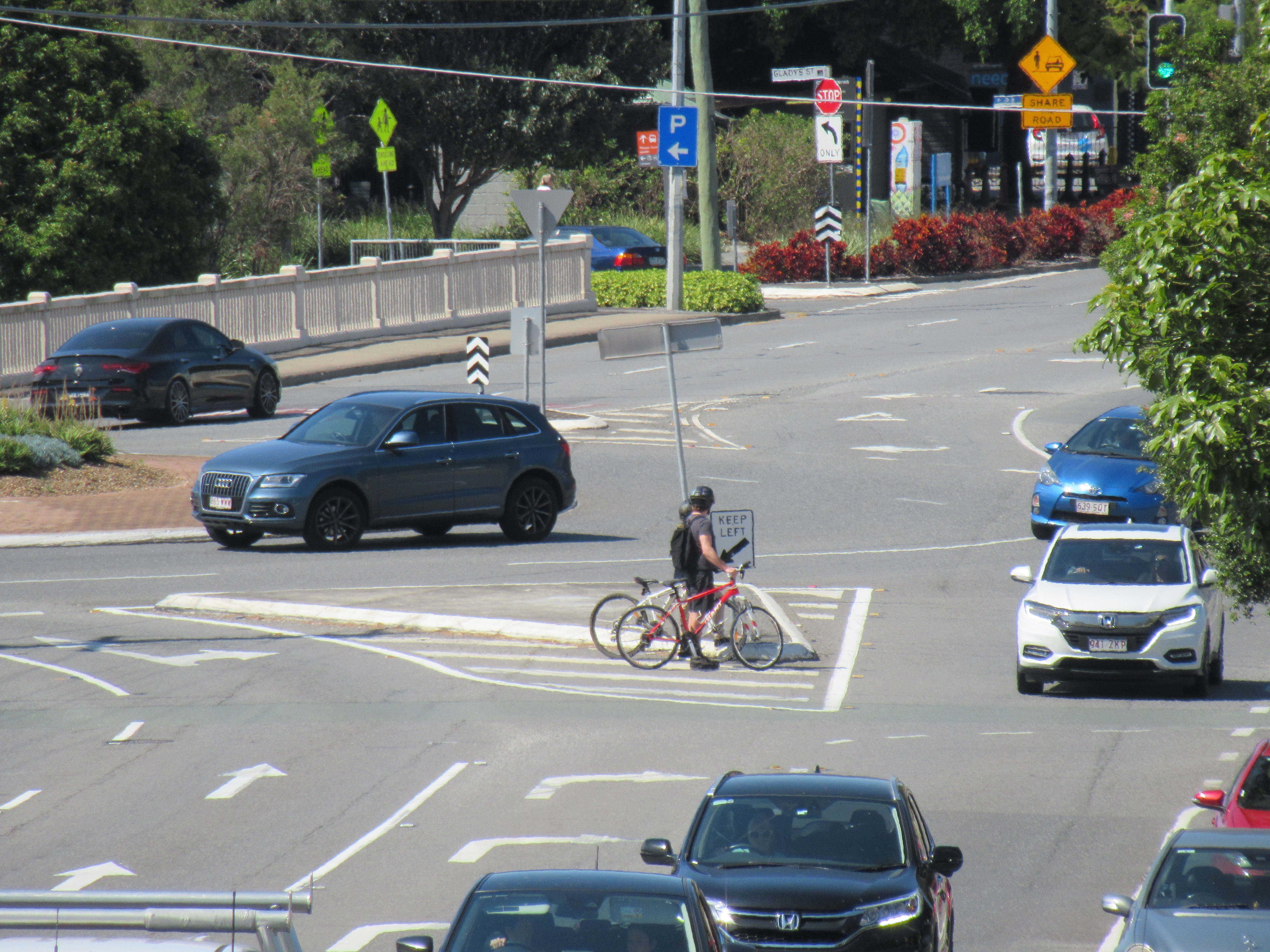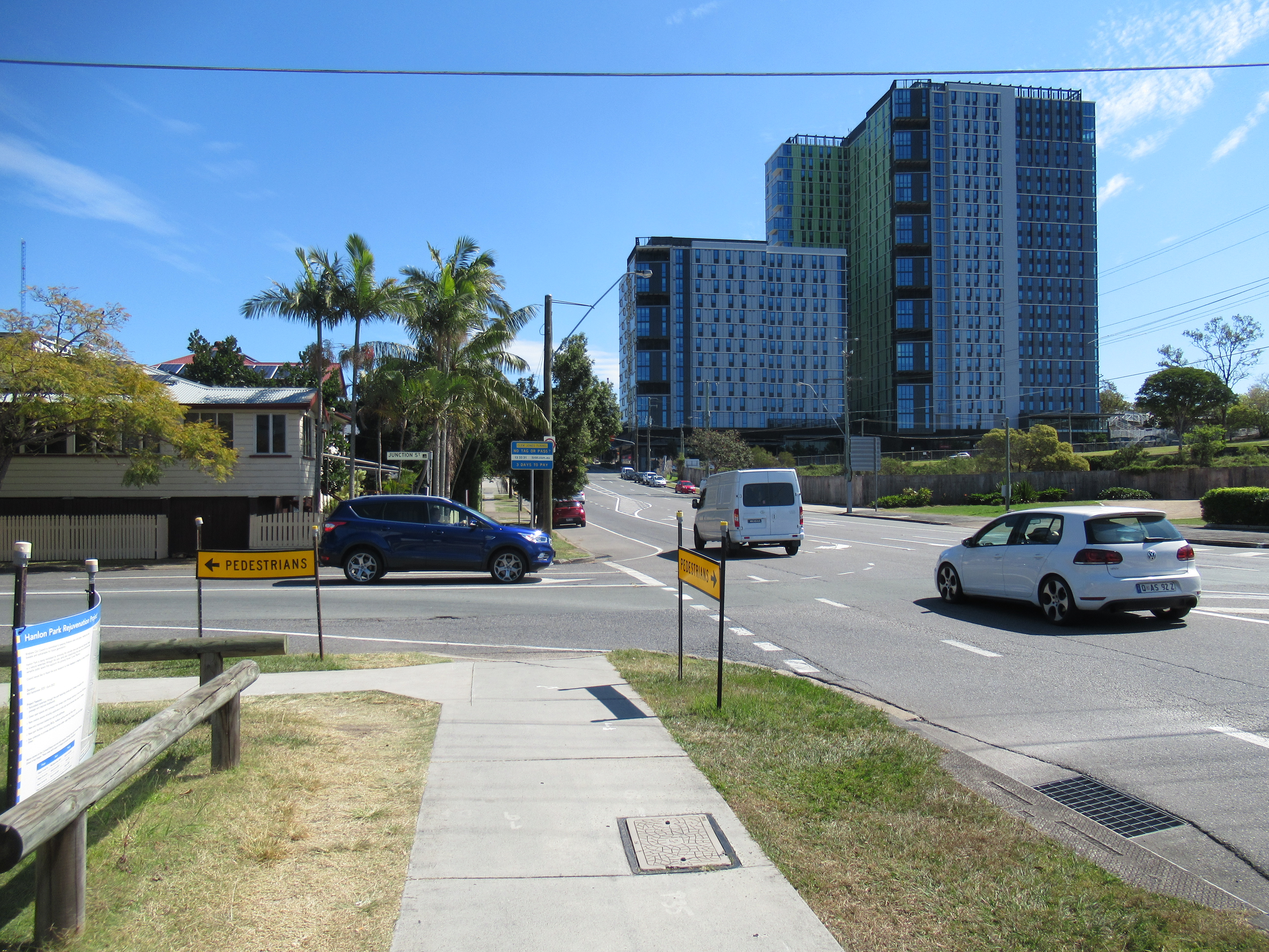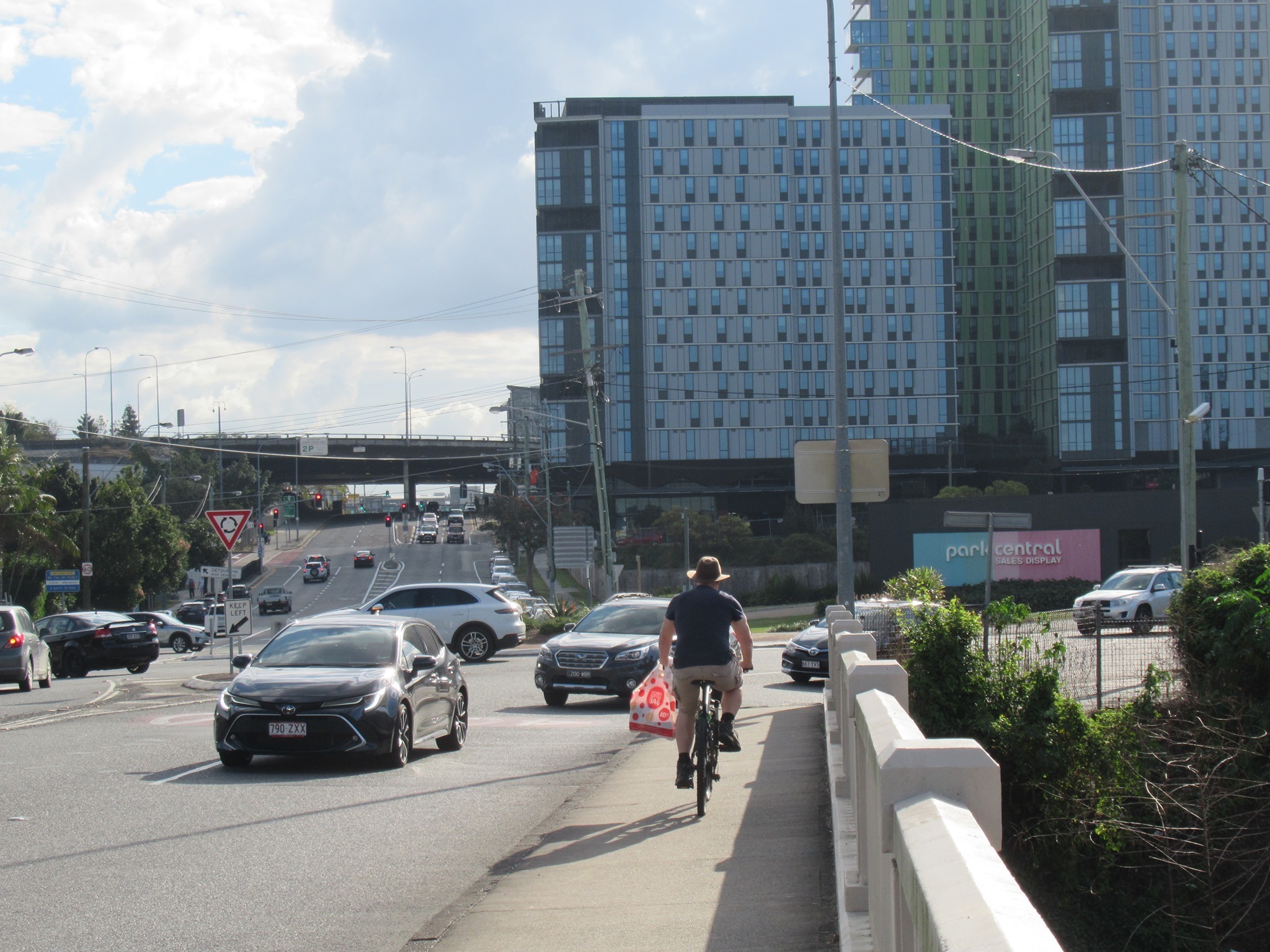 The Logan Road roundabout is particularly hostile for cycling, and pedestrians are expected to take long detours and experience multiple long delays to simply cross the road.