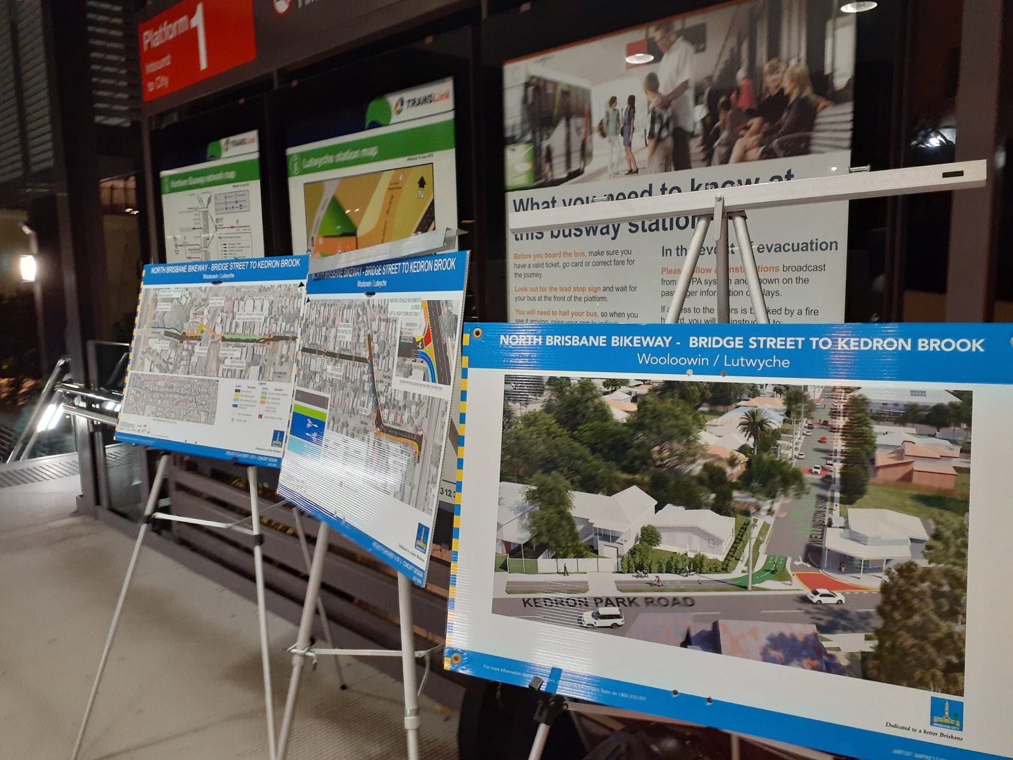 Although local residents were advised of the consultation sessions through letter-box drops, Council doesn’t appear to have made any effort to alert people who might cycle in the area – for example by contacting their large database of members subscribed to the Cycling Brisbane program, or by placing signs on the nearby bikeways. Brisbane North BUG, Airport BUG and Space for Cycling attempted to address this imbalance by promoting the consultation sessions on social media, leading a bike ride from the CBD to the Thursday session, posting notices along the bikeways, handing out flyers, and letter-boxing surrounding streets.