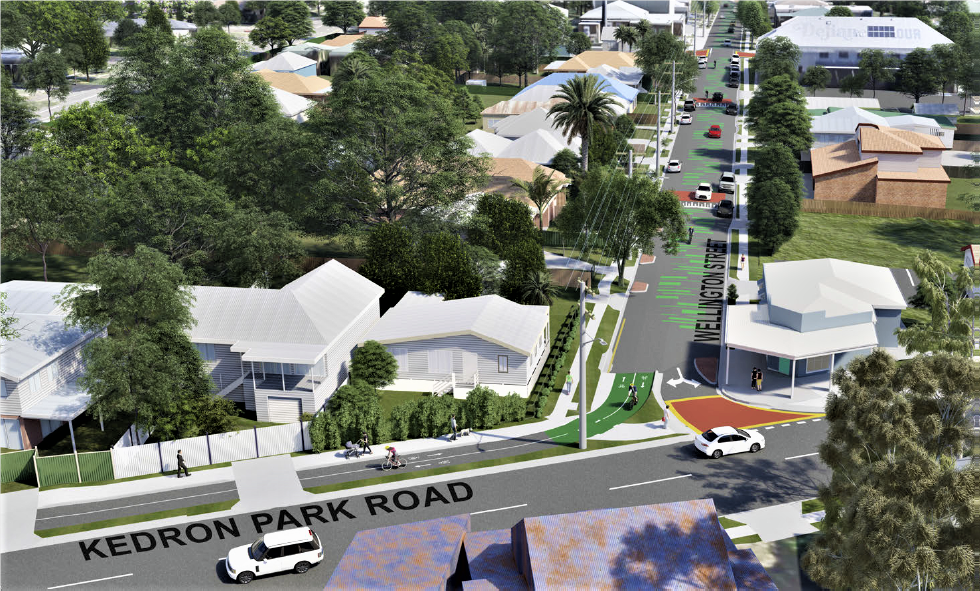 June 2019: Brisbane City Council finally release detailed plans for the Wellington Diversion. This proposes a shared path along Chalk St, a short section of protected cycleway along Kedron Park Road, and significant engineering work along Wellington St and Bradshaw St to create a “cycle street” with kerb build-outs, additional speed cushions, and new garden beds and kerbing. See also https://kedrontoday.com.au/bridge-street-to-kedron-brook-north-brisbane-bikeway-concept-design-released-for-community-feedback/