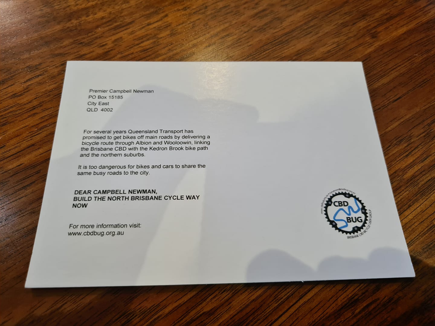Feb 2014: Frustrated by lack of action, members of CBD BUG campaigned for safety improvements on what they dubbed the “Albion-Wooloowin Death Corridor” along Bridge Rd and Dickson St. Story in Courier Mail They started sending postcards to the Premier (and former Lord Mayor), Campbell Newman.