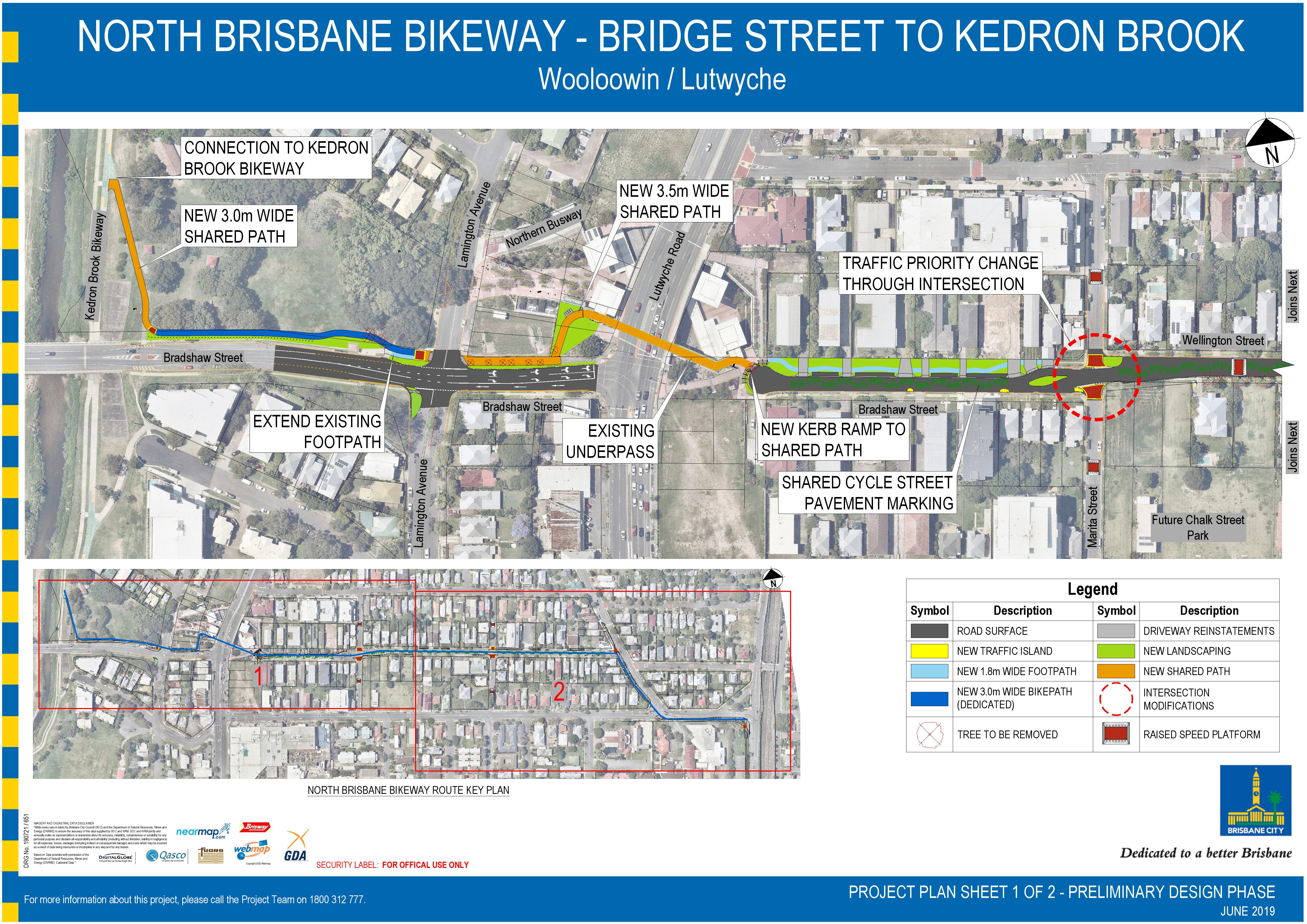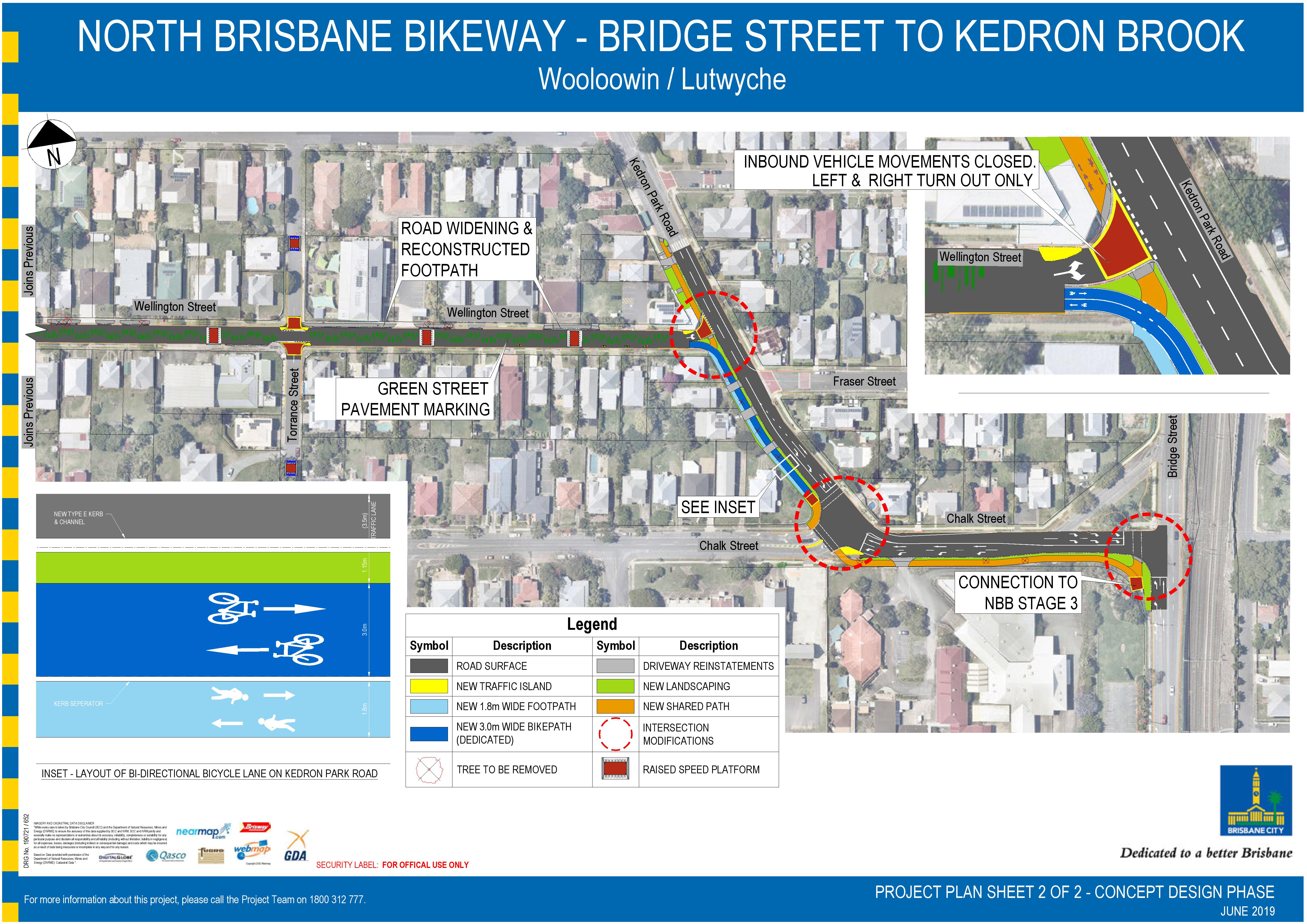 October 2018: BCC announce that they have cancelled plans for NBB stage 5 in favour of a diversion to the west at Chalk St, taking Wellington St and Bradshaw St to the Kedron brook Bikeway via the Lutwyche Bus Station.