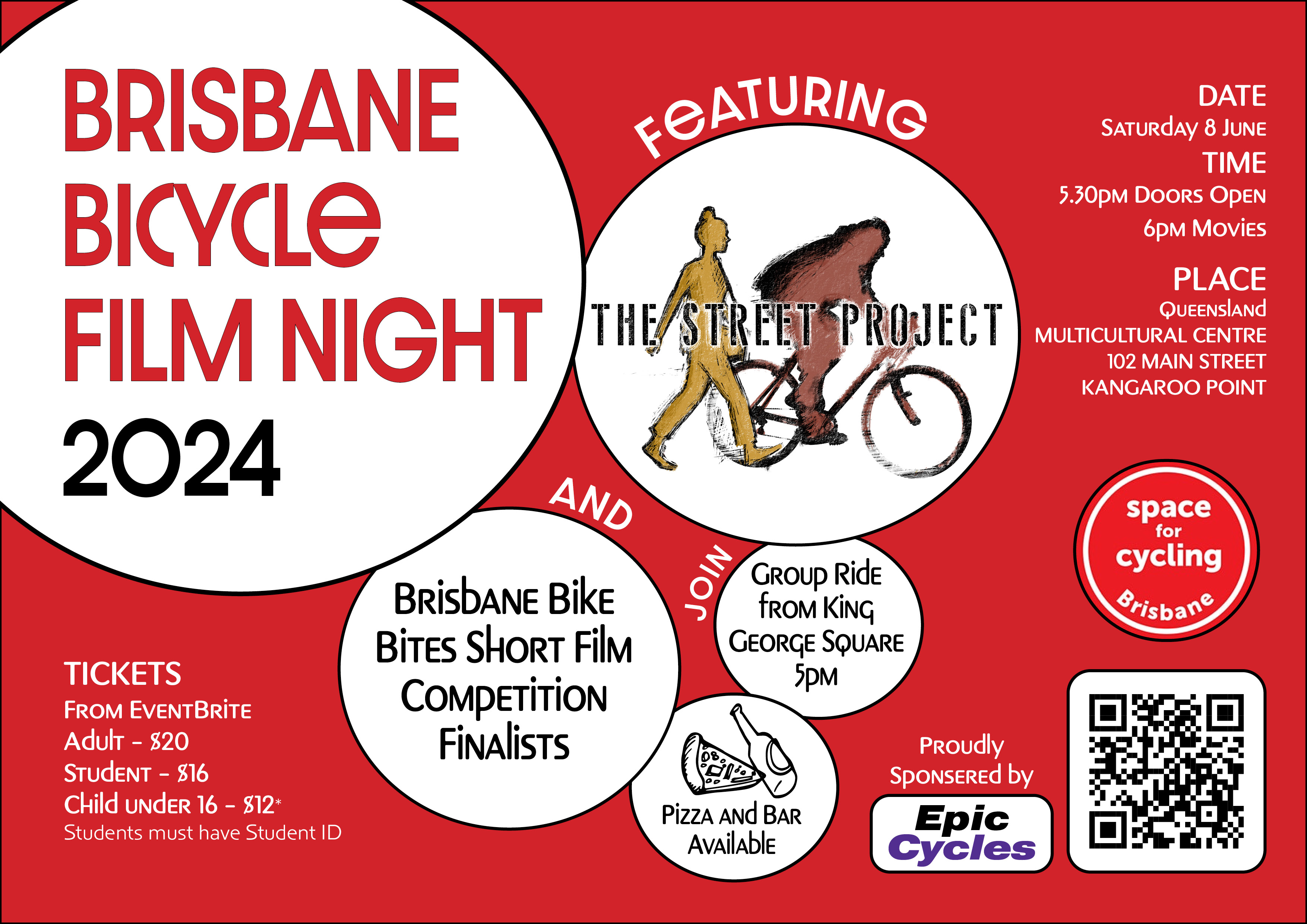 We will also be screening the finalists in the Brisbane Bike Bites short film competition sponsored by Epic Cycles.