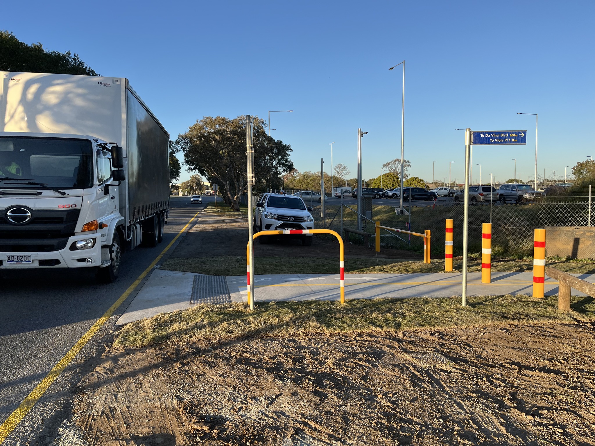 In their petition response, Council also noted “Sugarmill Road is deemed to be less suitable for cycling due to the speed and volumes of traffic using the roundabout at Lomandra Drive.” But since then, Brisbane Airport have completed a new shared path parallel to Lomandra Drive which connects to Sugarmill Road without requiring riders to navigate the roundabout in question!