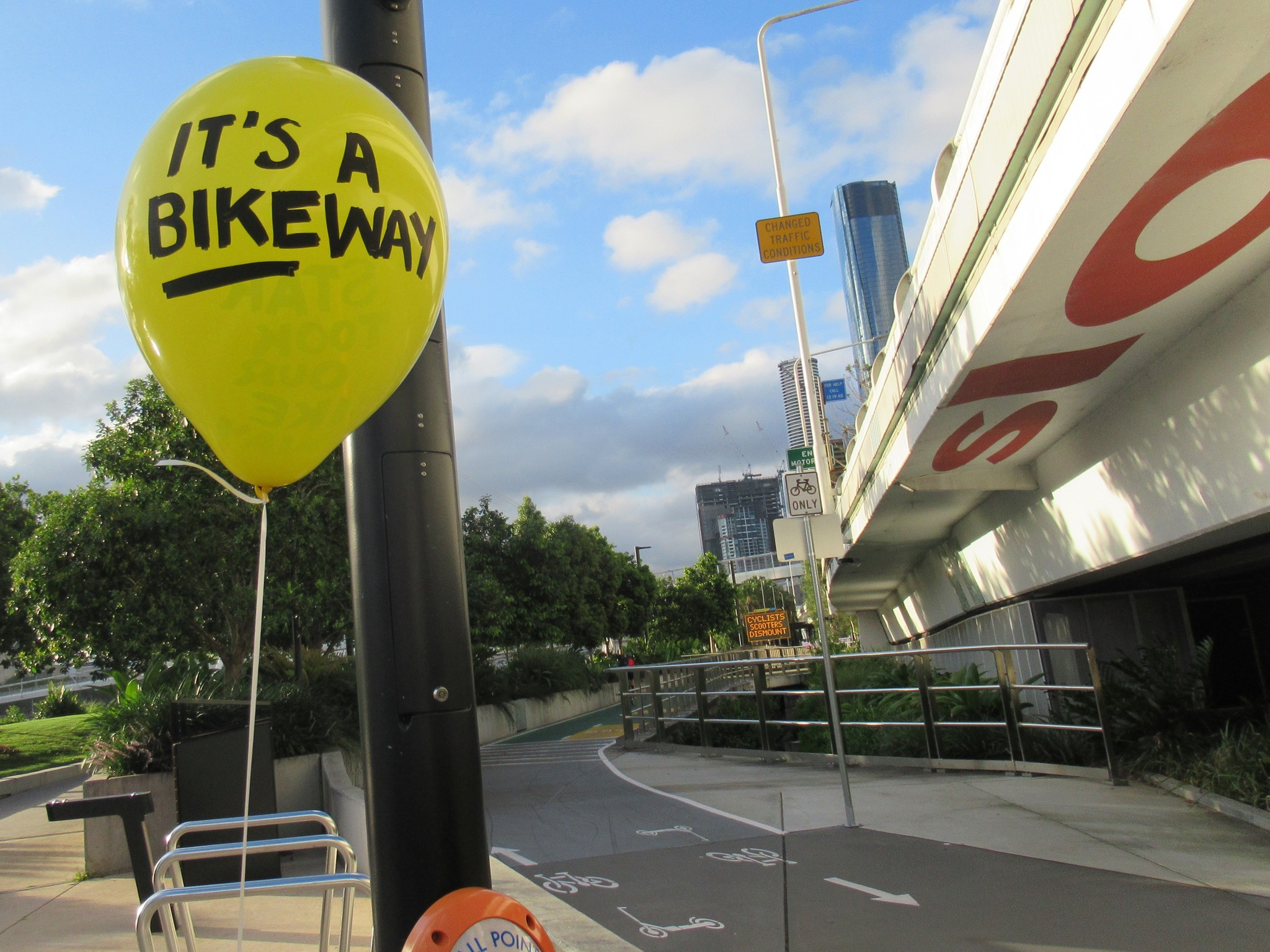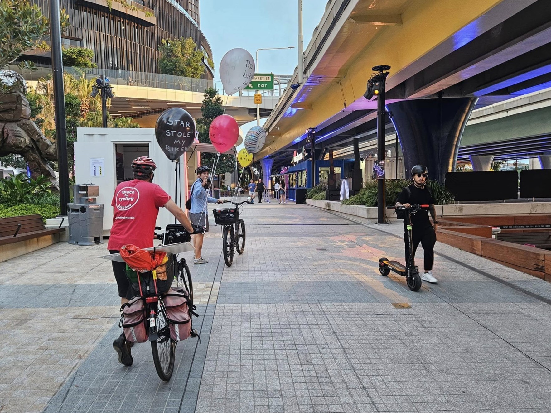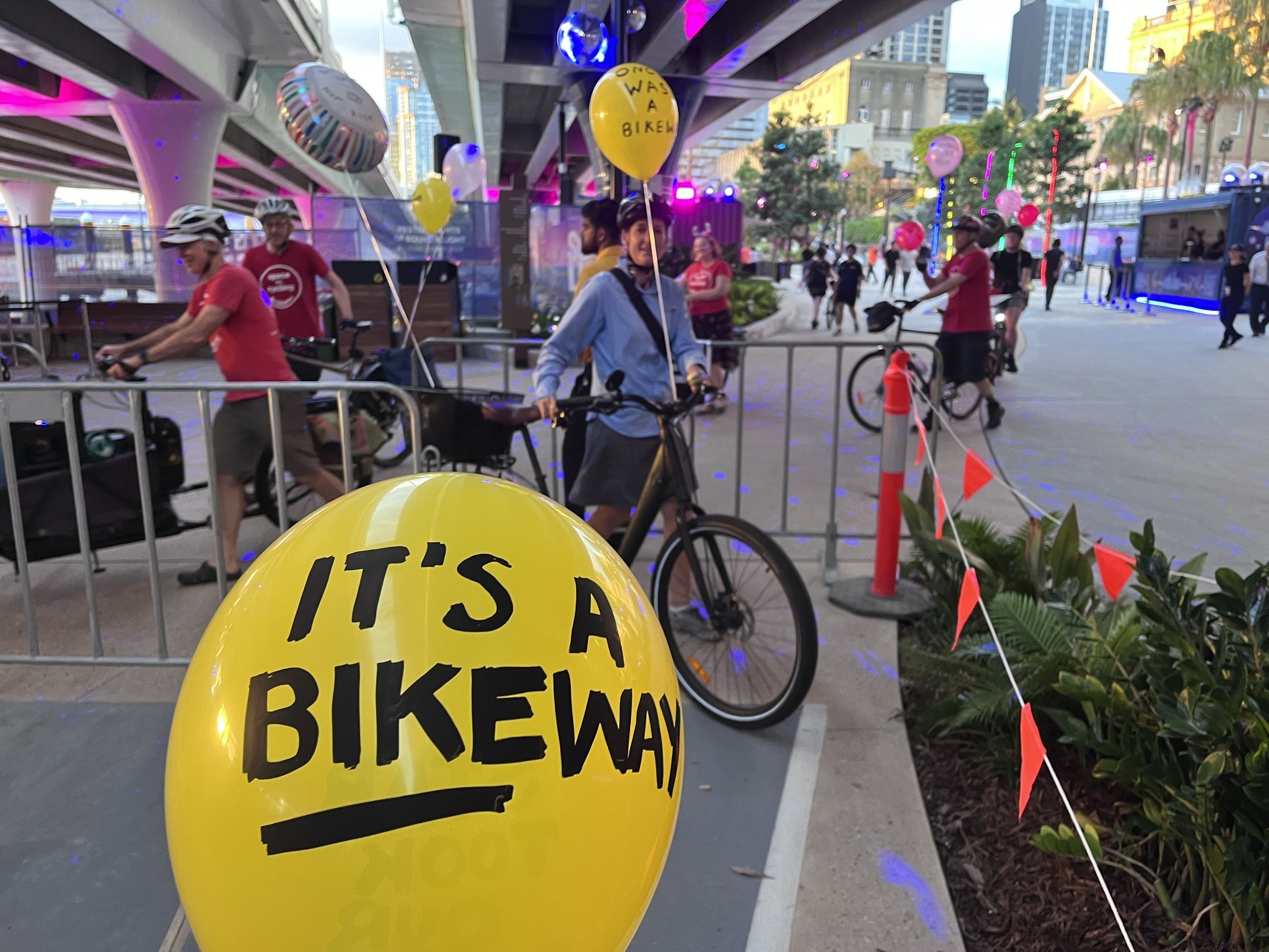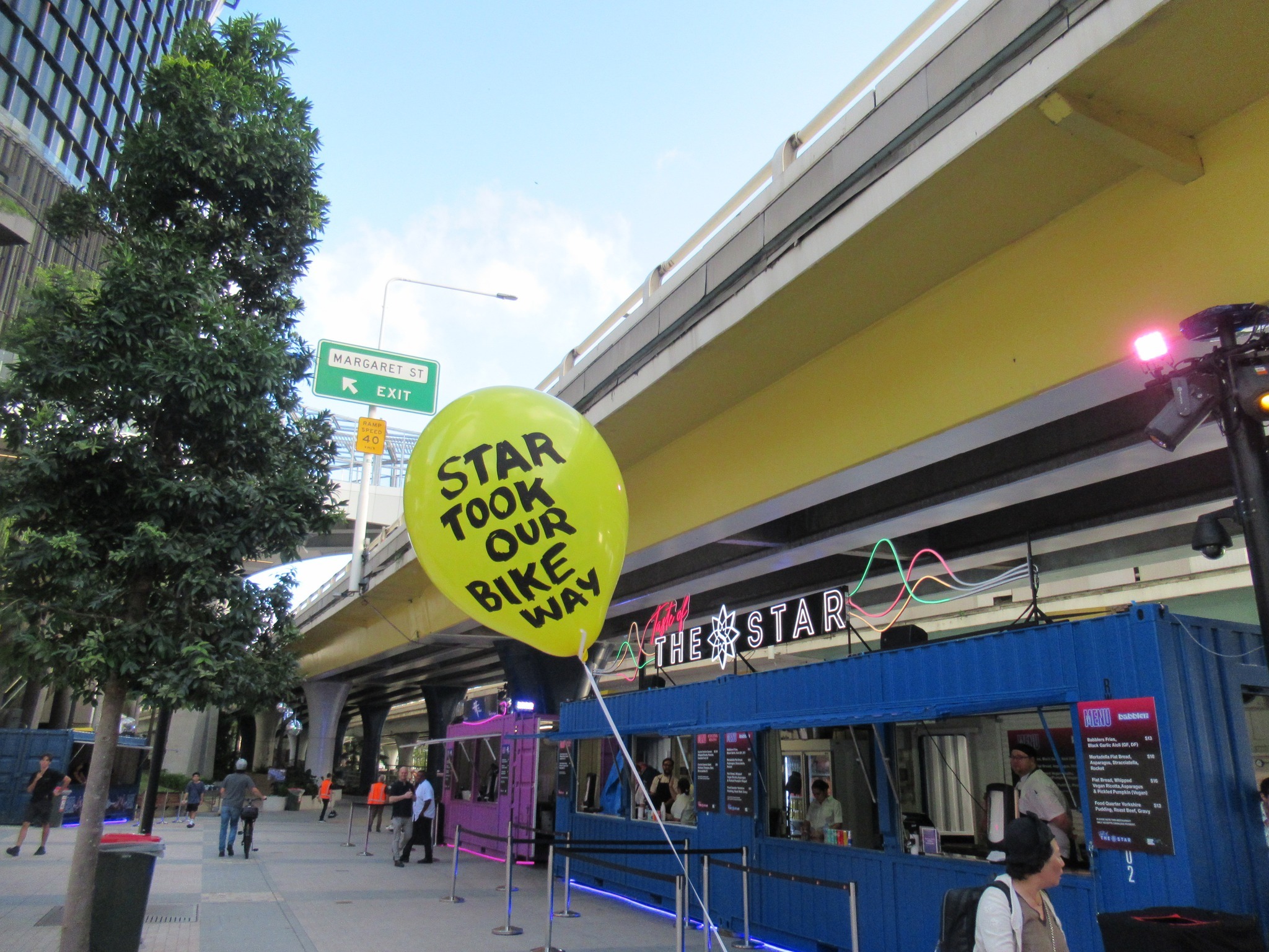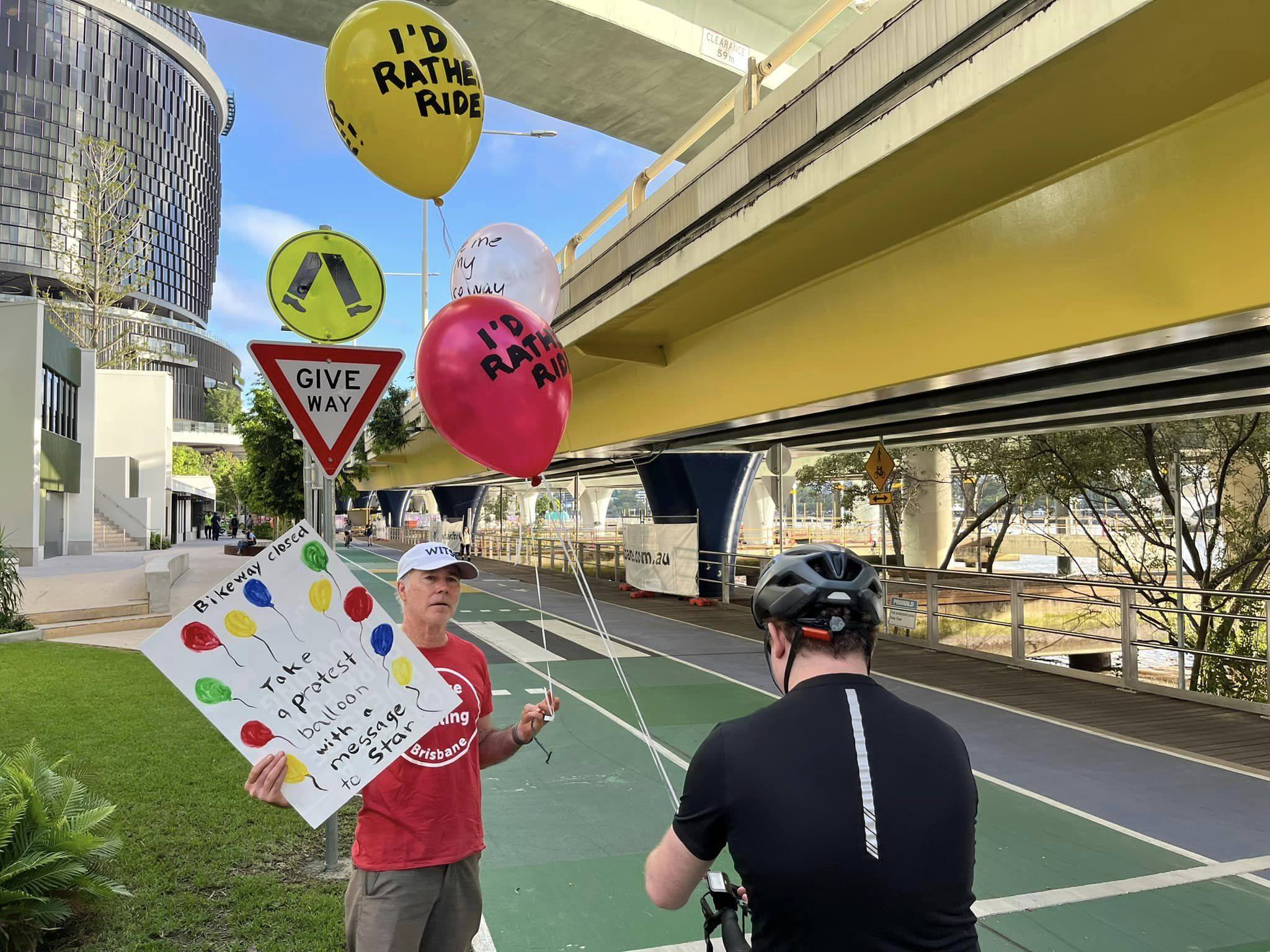 Meanwhile, we needed a way spread the word and provide other path users with a way to let Star and the Queensland Government know how frustrated they were with the arrangement. So, on the second afternoon of the Sono Lumo event, we organised a peaceful and non-disruptive protest—handing out balloons for people to take for a walk though the site with a message to those responsible.
