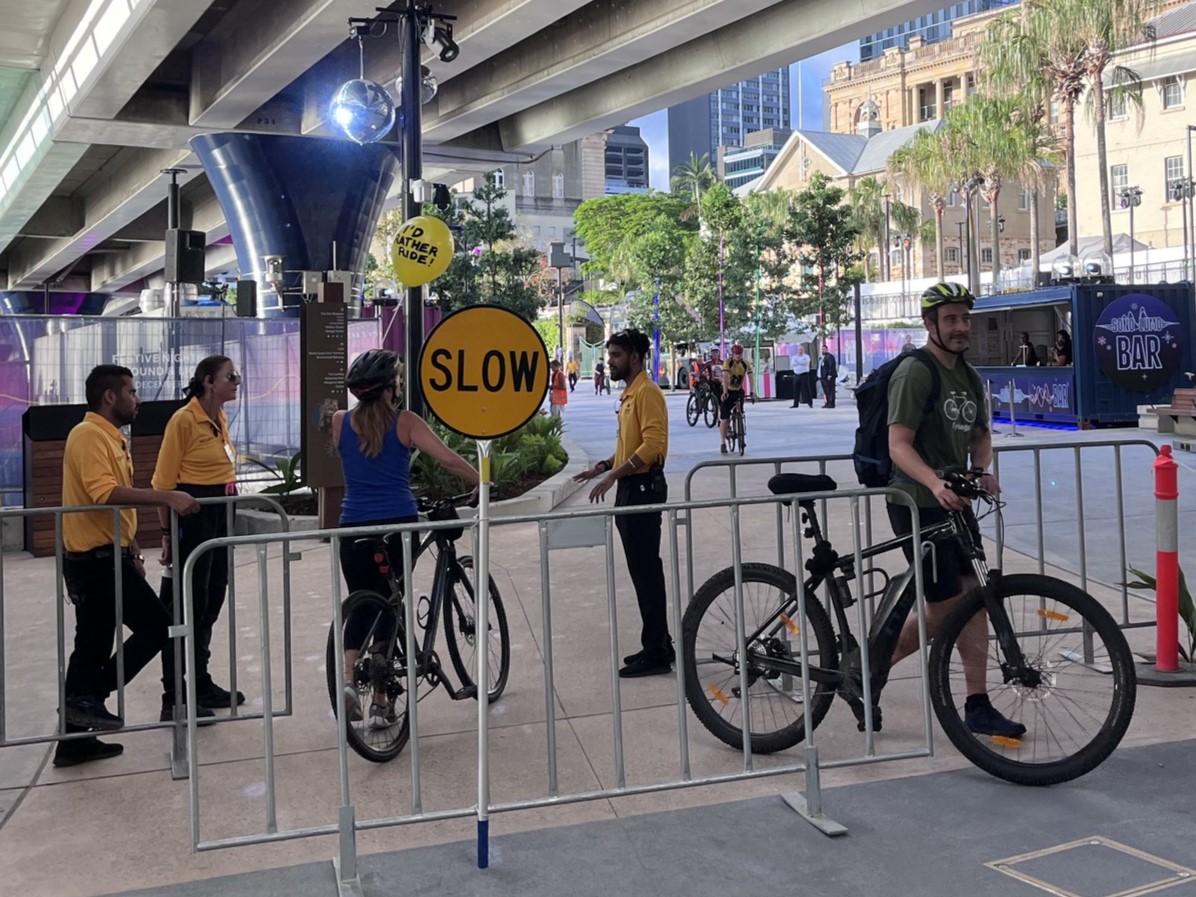 This was not just a once-off event in the lead-up to Christmas! The plan is for regular “activations” at Queens Wharf Plaza that will similarly disrupt the bikeway.