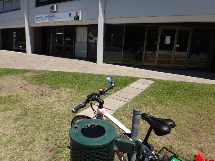 October 18, 2016October 18, 2016eastbug dsc06920 The Coorparoo Ward office on Logan Rd is not easy to access by active transport, and there’s really nowhere to lock a bike