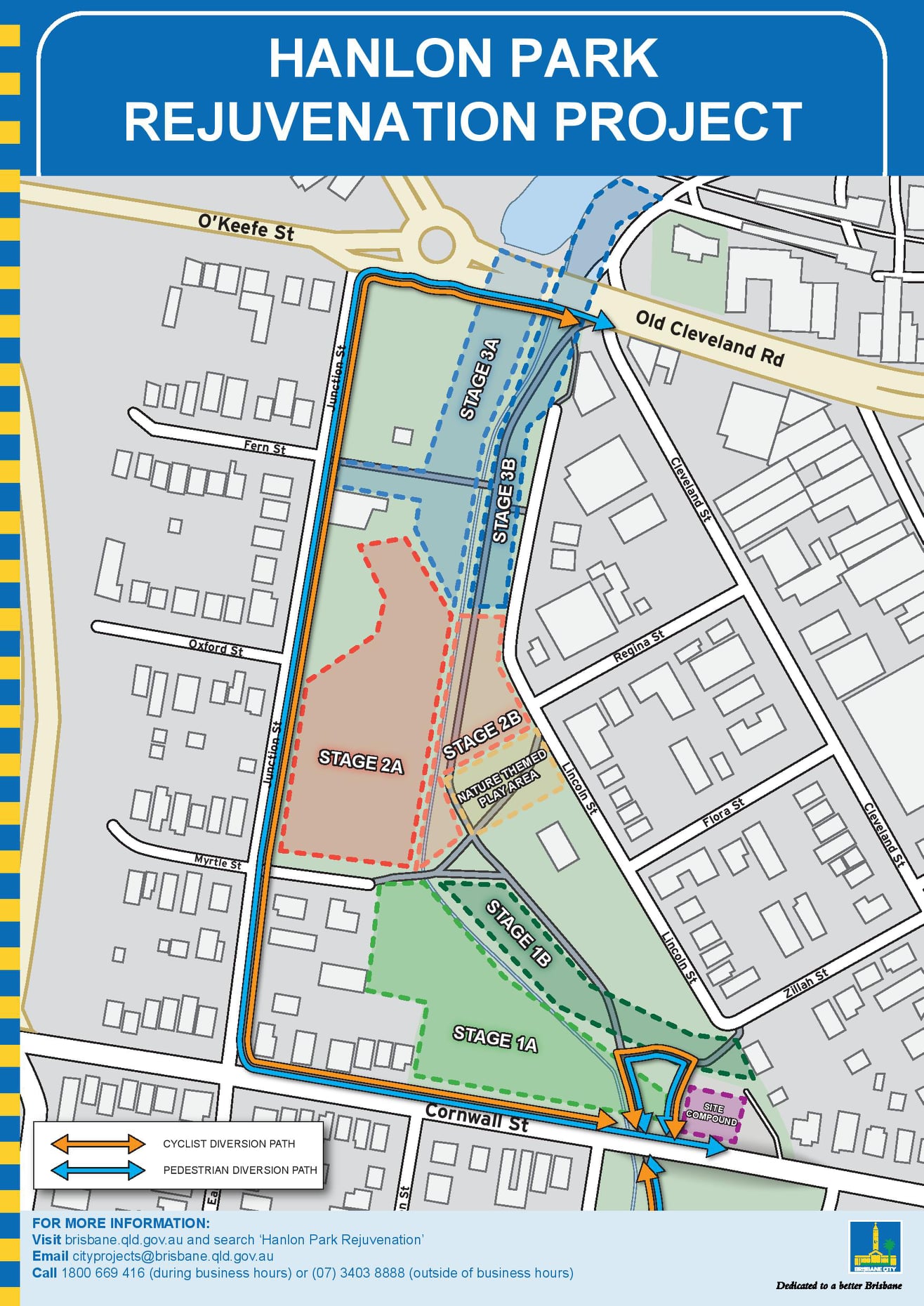 East BUG reports that there has been plenty of action in Hanlon Park at Stones Corner recently. Stages 2A and 2B are scheduled to open in “late 2021”, but the paths are looking good, so we’re hoping the connection through to Lincoln St won’t be too much longer.