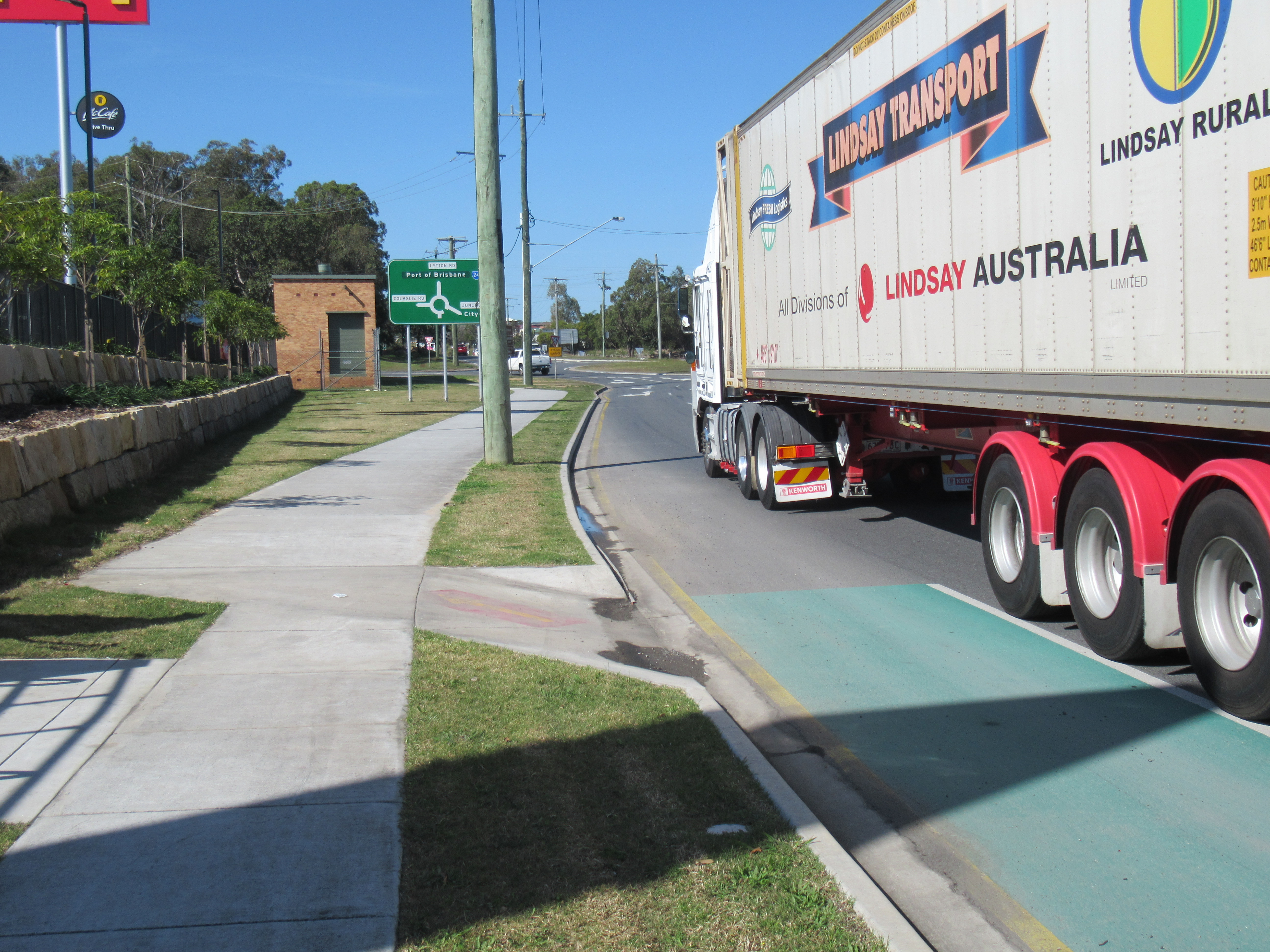 Council’s proposed on-ramp is at 45 degrees to the road, which is the same as the Austroads “low speed” option—with the reasoning given that the 45 degree approach permits good visibility of traffic already on the road. However we think there are circumstances where the Austroads “high speed” option of 10 degrees is more appropriate.