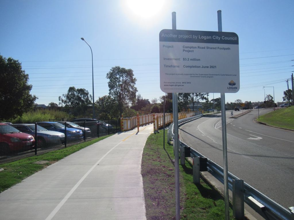 The newest section of this path connects from the new Compton Rd shared path (subject of our previous post) to Moss St. There’s then a gap between there and Park Rd where you can pick up the older path again and ride south as far as Loganlea Road.