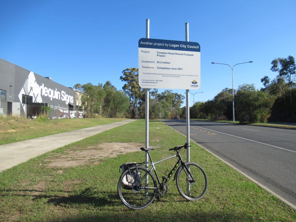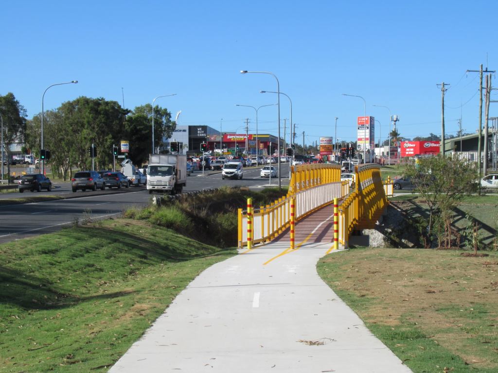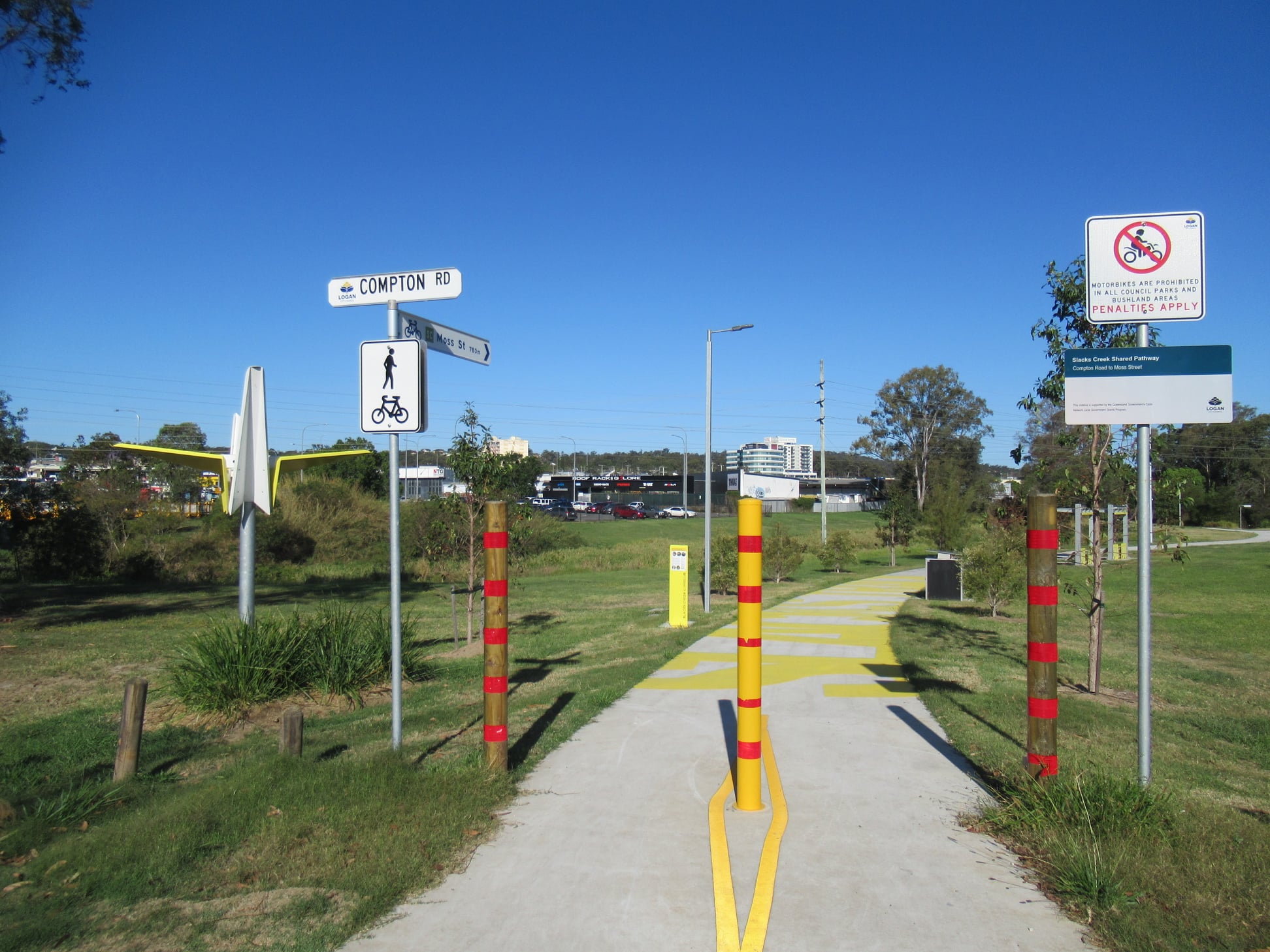 It’s a little outside our patch, but this week Belinda took the opportunity to check out a new section of path at Slacks Creek which now joins the Pacific Highway to Kingston Rd (and the new facilities at Logan Park) along the southern side of Compton Road.