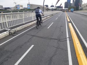 Speaking of possible sabotage, we were disappointed to read about a rider who encountered a field of tacks laid out across the Norman Creek Bikeway in the underpass beneath Ridge St at Greenslopes on Thursday night. Thanks to that lady, and the person who helped her clear the path as best they could. The tacks weren’t at all easy to see – even in daylight on Friday morning, when Belinda still found a handful upturned and along the edges. We hope no-one else’s trip to school, to work, or to the park was ruined by this nasty act.