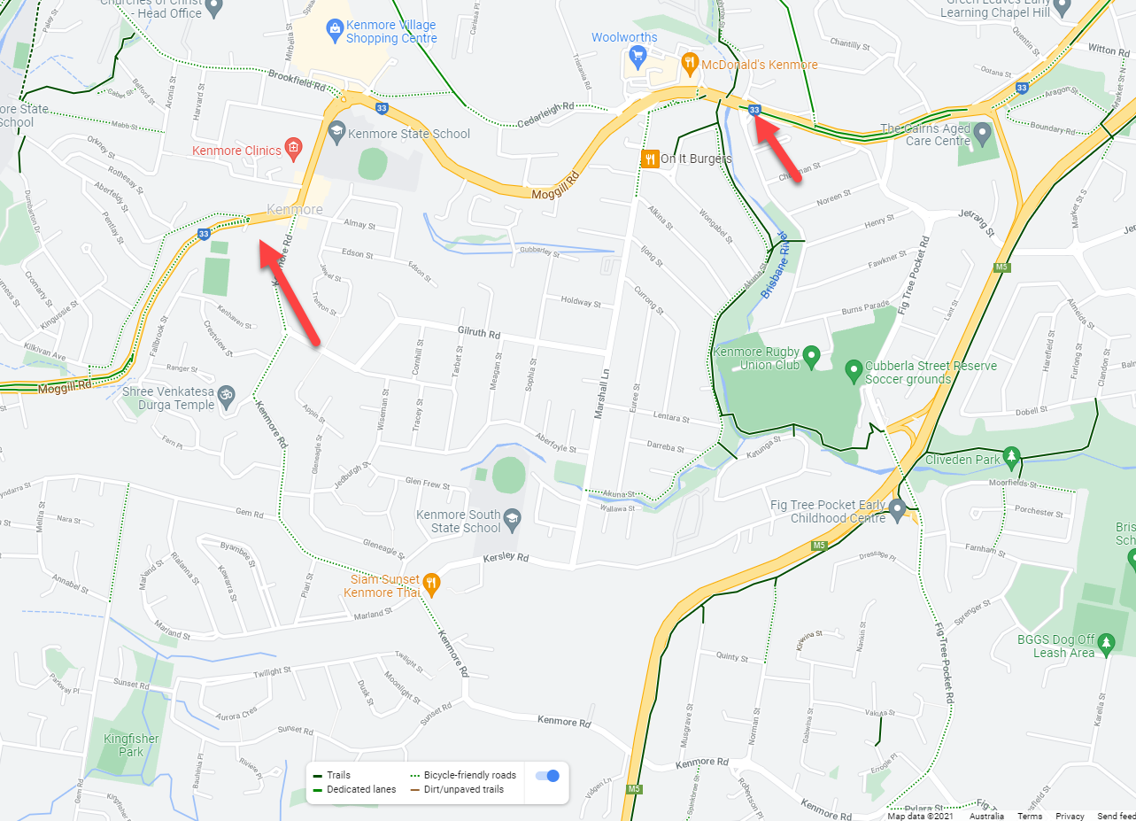 It took several reports over the years, but finally Google Maps has turned off “bicycle friendly roads” designation for Moggill Road in Kenmore – a stretch of road that has taken the lives of two cyclists in the past decade.