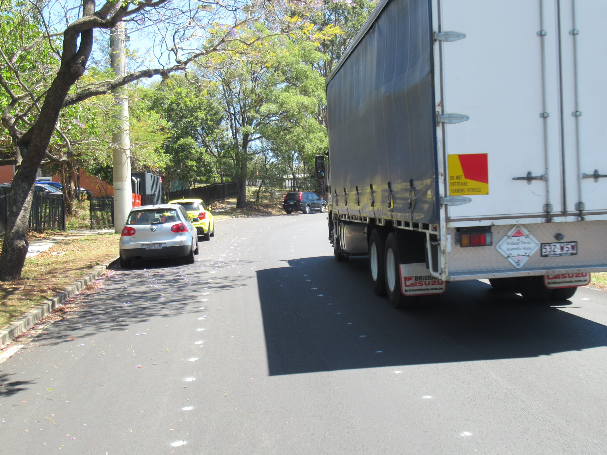 In particular, on the southern side of Lytton Rd between Perrin Creek Bridge and Thynne Rd/Fifth Avenue, the bike lane should be positioned immediately next to the kerb, with any car parking (where room is available) between the bike lane and the main traffic lane.