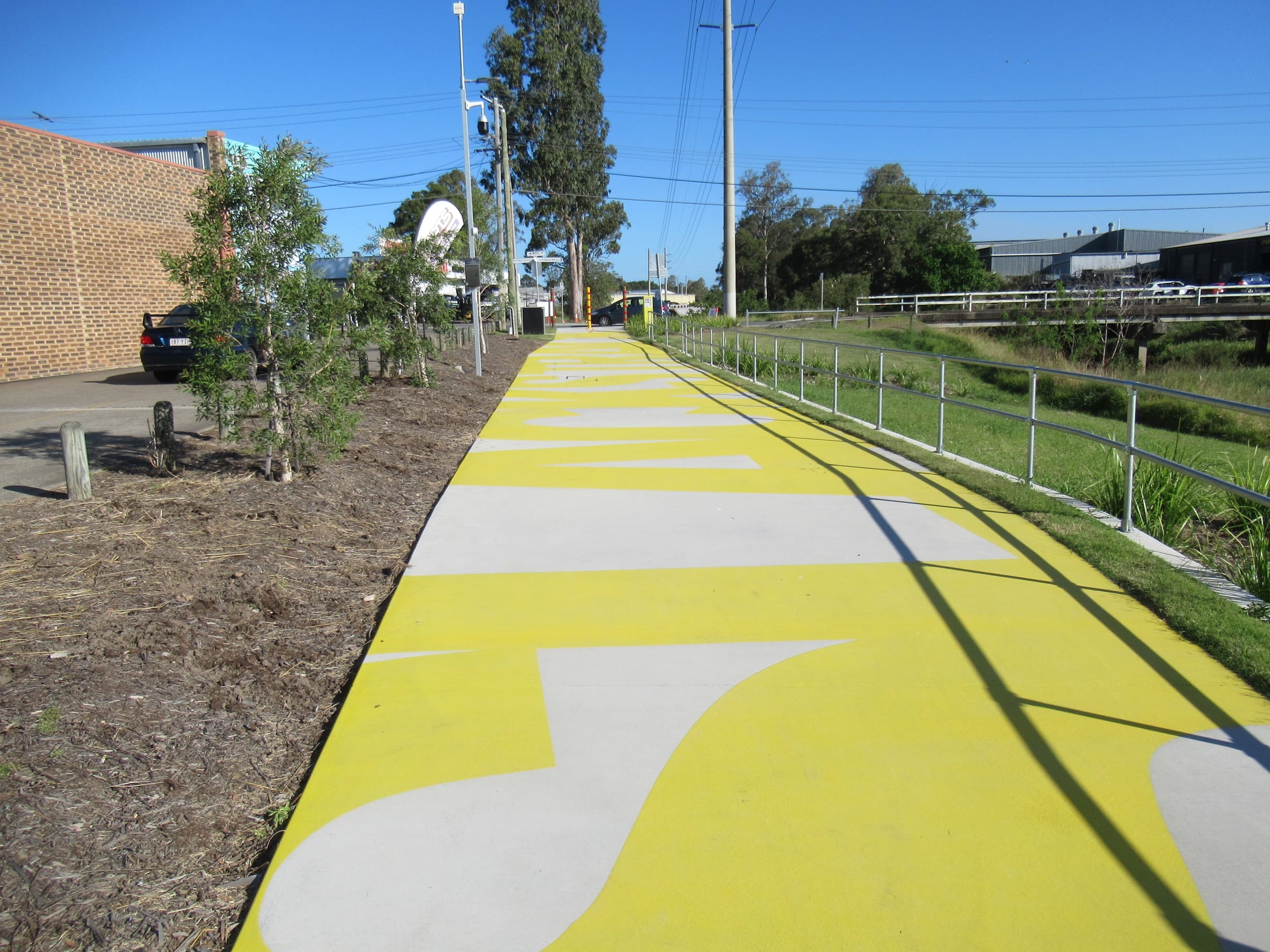 The cheerful yellow theme ties aspects of the path together, and we love the way the project has helped create a peaceful green corridor through an industrial zone.