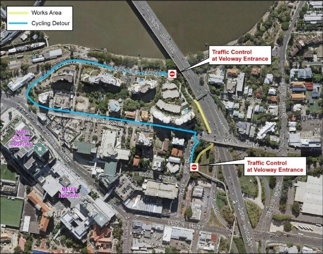 There will be a night-time detour in place via Allen St and Vulture St. Or you might find using the Gabba Bikeway and ramp at Trinity Lane more convenient. (It would be even better if that ramp had been upgraded!!)