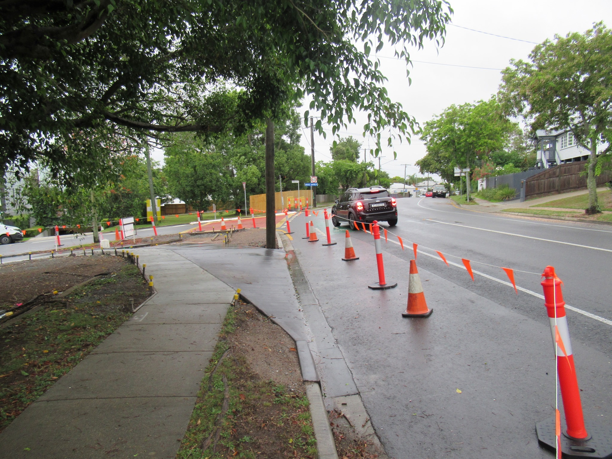 It was quiet on Brisbane’s bikeways on Sunday – for obvious reasons. We took the opportunity for a sneaky ride on some of the new pieces of the North Brisbane Bikeway at Wooloowin. Hopefully there won’t be too many days lost to rain – we’d love to be riding on this by Christmas. It’s looking fabulous.
