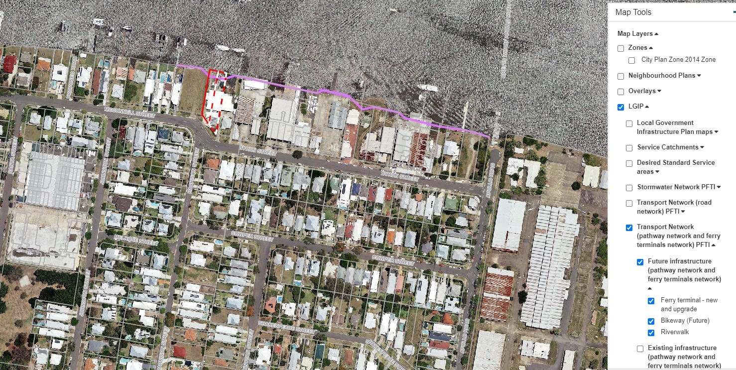 Back on 1 June, Council’s City Planning and Economic Development Committee had a presentation on the plans for a new apartment building at 67-69 Byron St, Bulimba. Our interest was sparked not because of the apparent up-zoning of land currently zoned LMR3 Low-medium density residential (up to 3 storeys), but because we’re very conscious of ‘plans’ for a Riverwalk along this section of the Bulimba River, connecting to the Apollo Road Ferry terminal, and providing an alternative to increasingly busy Byron St.