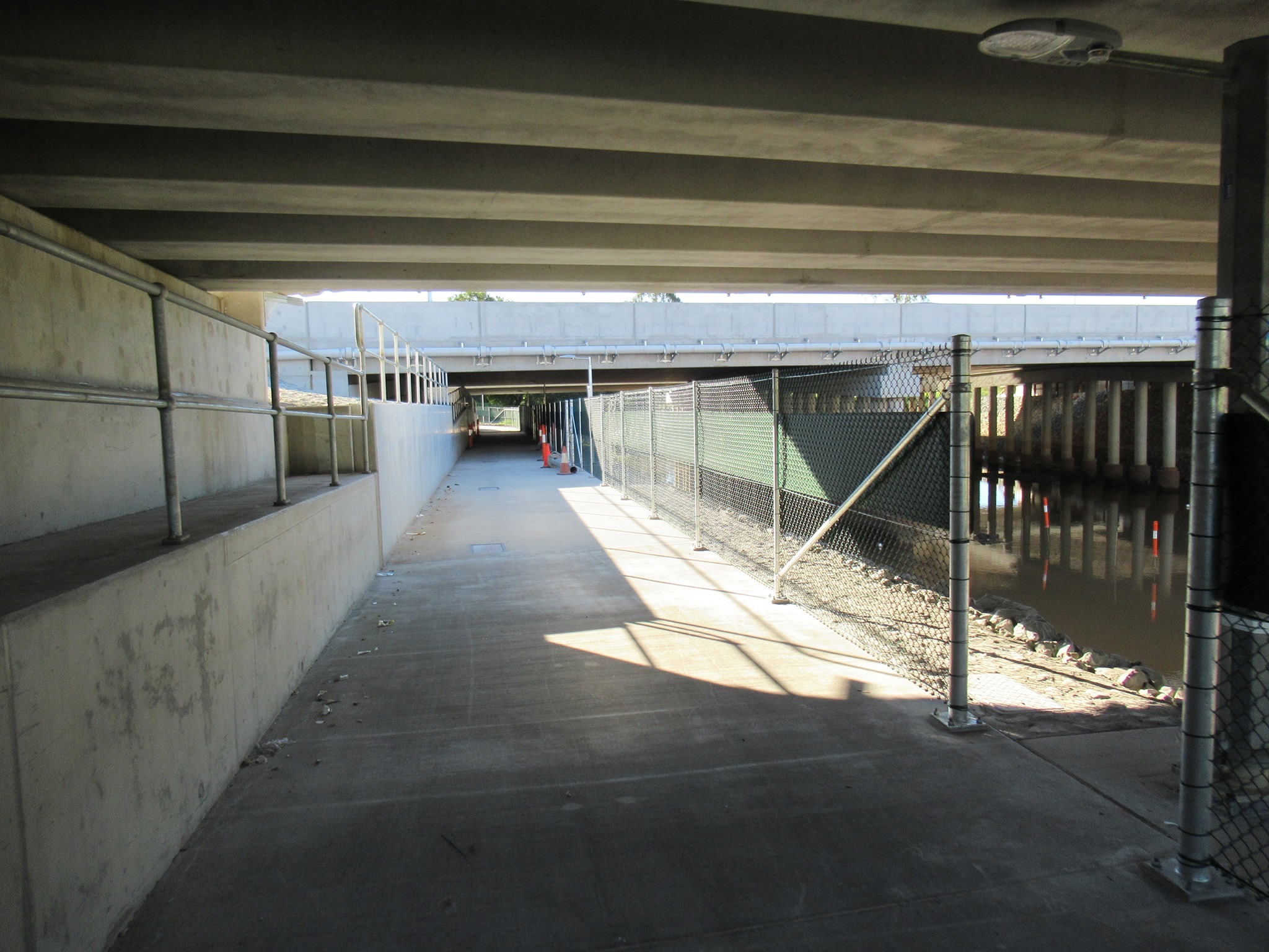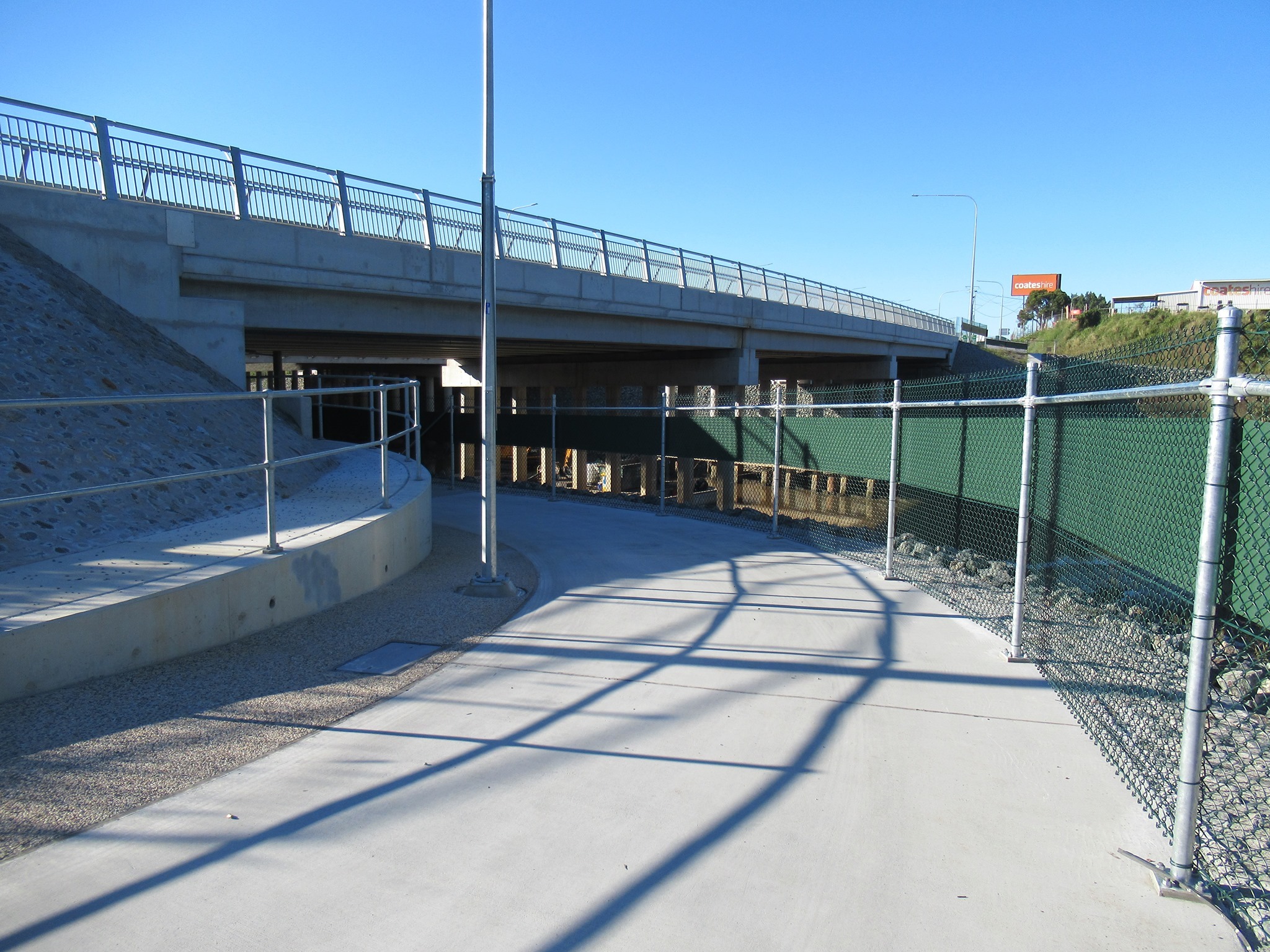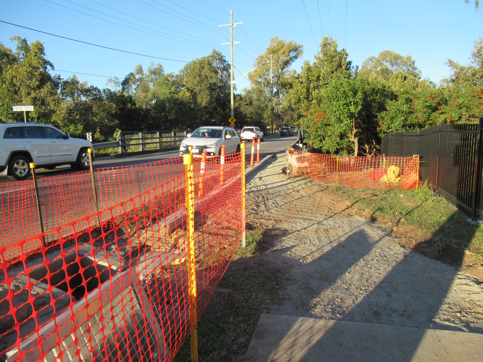 As of last weekend, fencing along the edge of the Ipswich Motorway underpass at Oxley Creek is almost complete. That should prevent anyone somehow riding off the edge into the creek. But also, importantly, it aims to stop any wildlife climbing up and getting on to the motorway.