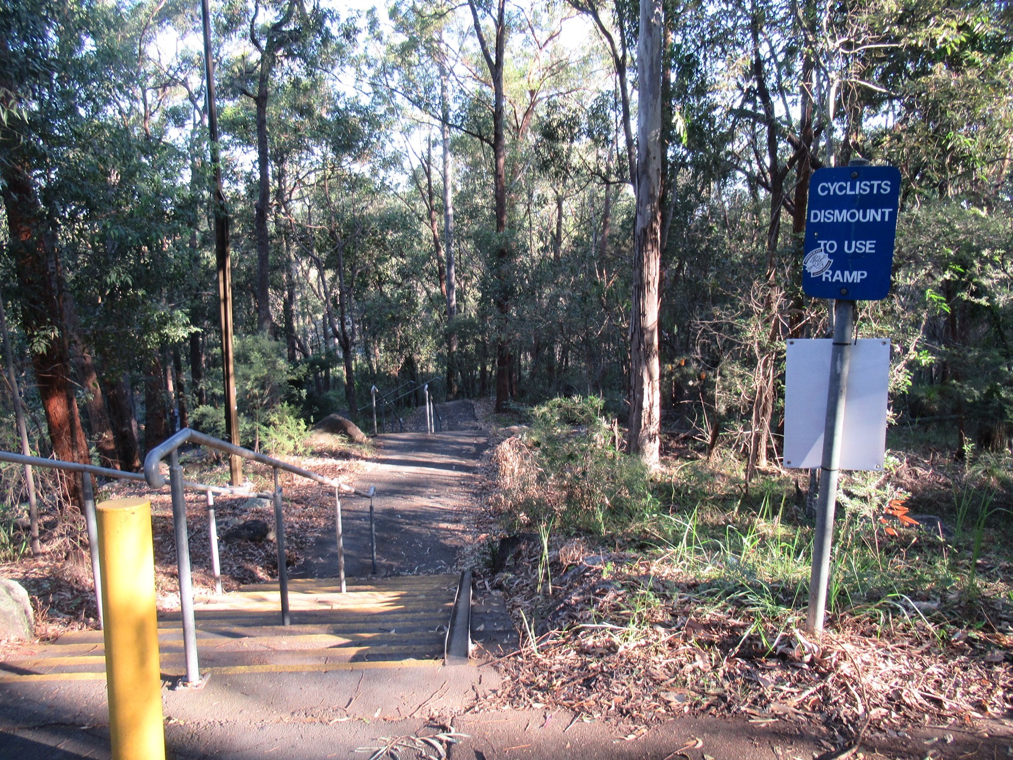 The challenge is that Johnson Path has a number of flights of stairs. Those stairs have a bike wheeling ramp, but that still effectively rules out anyone with a trike or cargo bike, and probably a trailer. Ironically, someone with a heavy electric bike for riding up hills like Griffith Road may well struggle to push it up all the stairs on the Johnson Path.