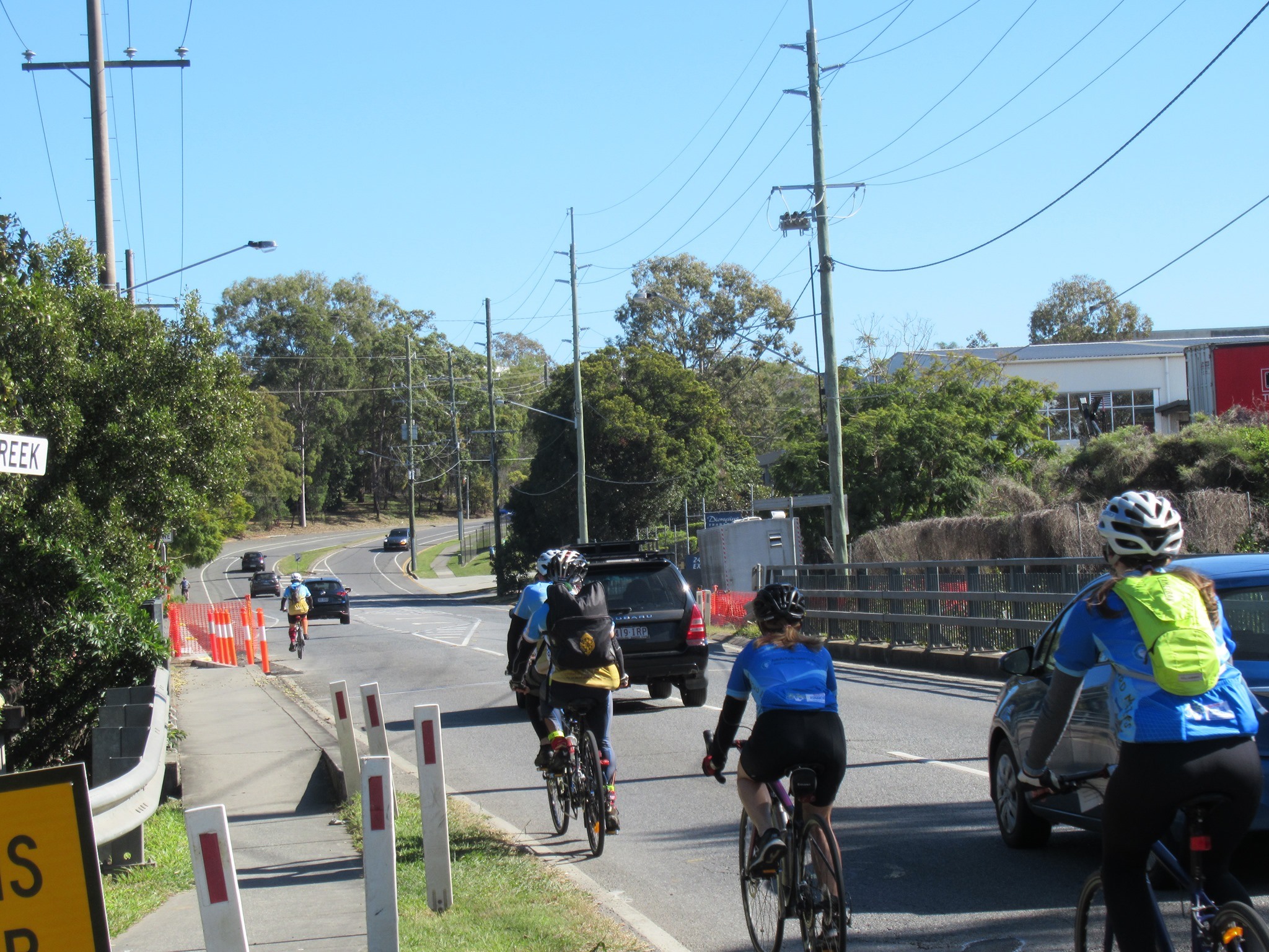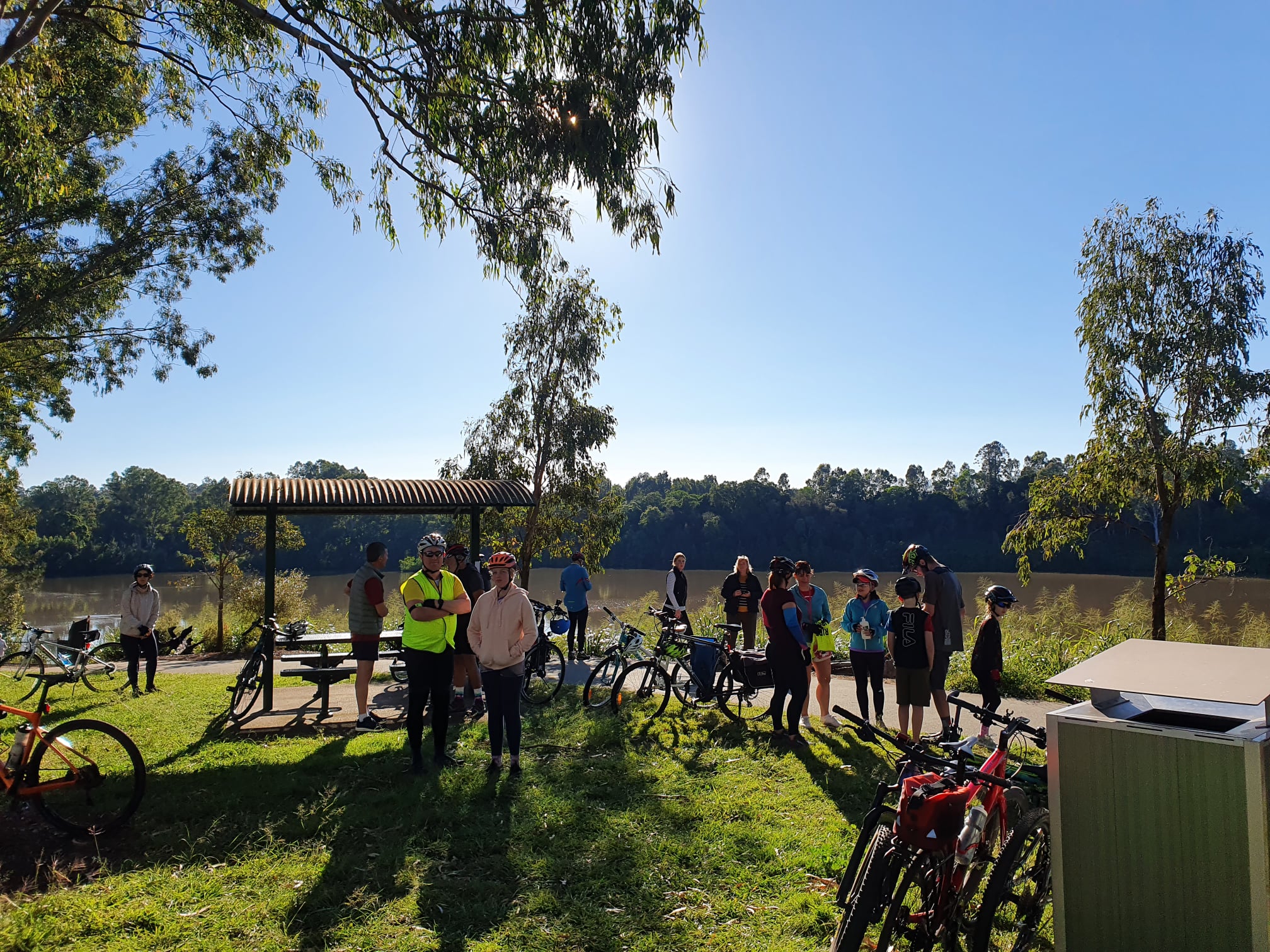 Last weekend, more than 50 people gathered at John Magee Park in Seventeen Mile Rocks to ride with Brisbane West BUG and Brisbane Bicycle Explorers Club to the Riverwalk opening celebrations in Witton Barracks Park. With kids, parents, grandparents in the group, it was truly an all ages and abilities event. Some of the kids were on a group ride for the first time, and did really well with the hills on the Centenary Cycleway. But the crossing at Fig Tree Pocket Road was a challenge; that really needs improvement!