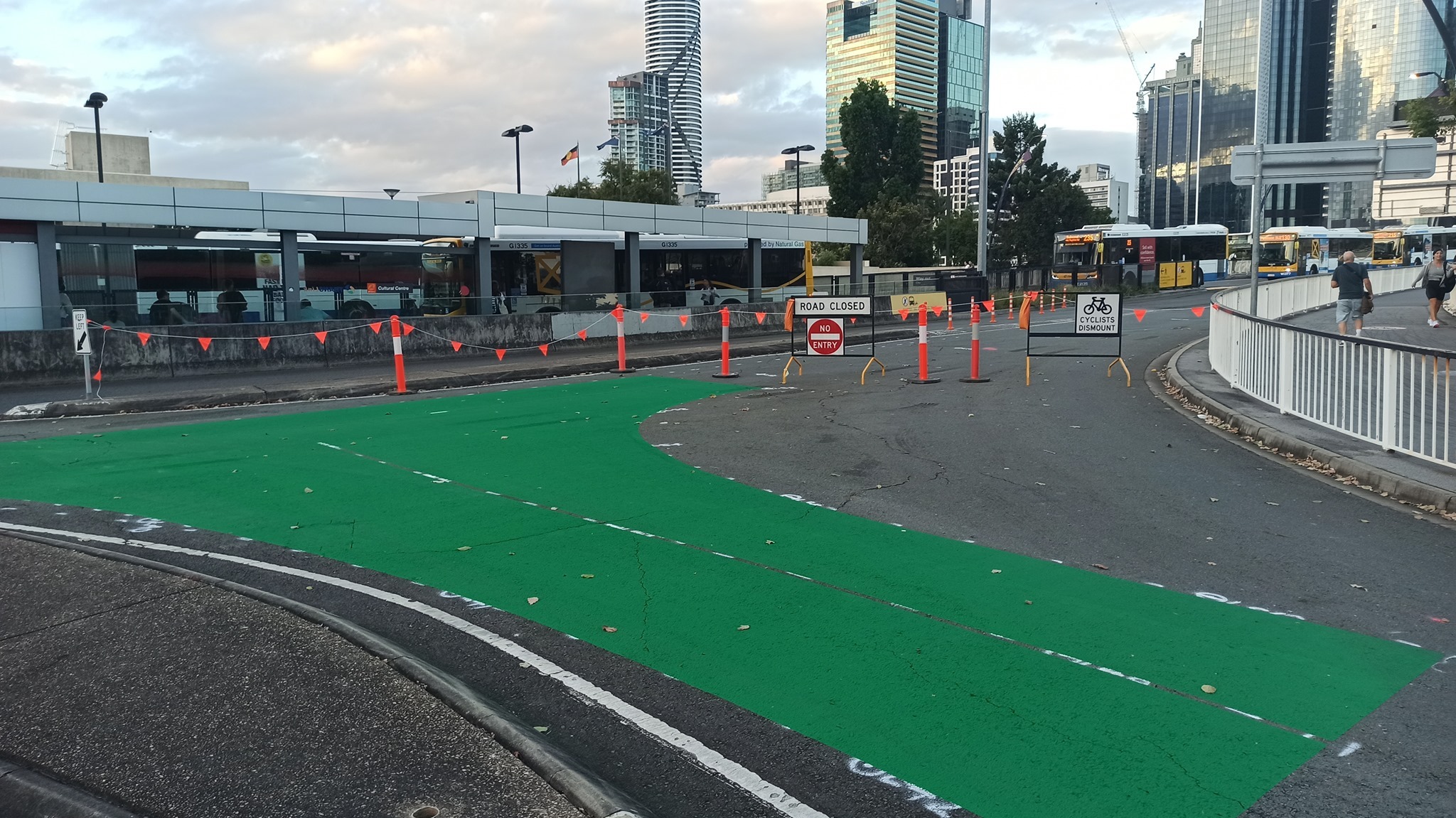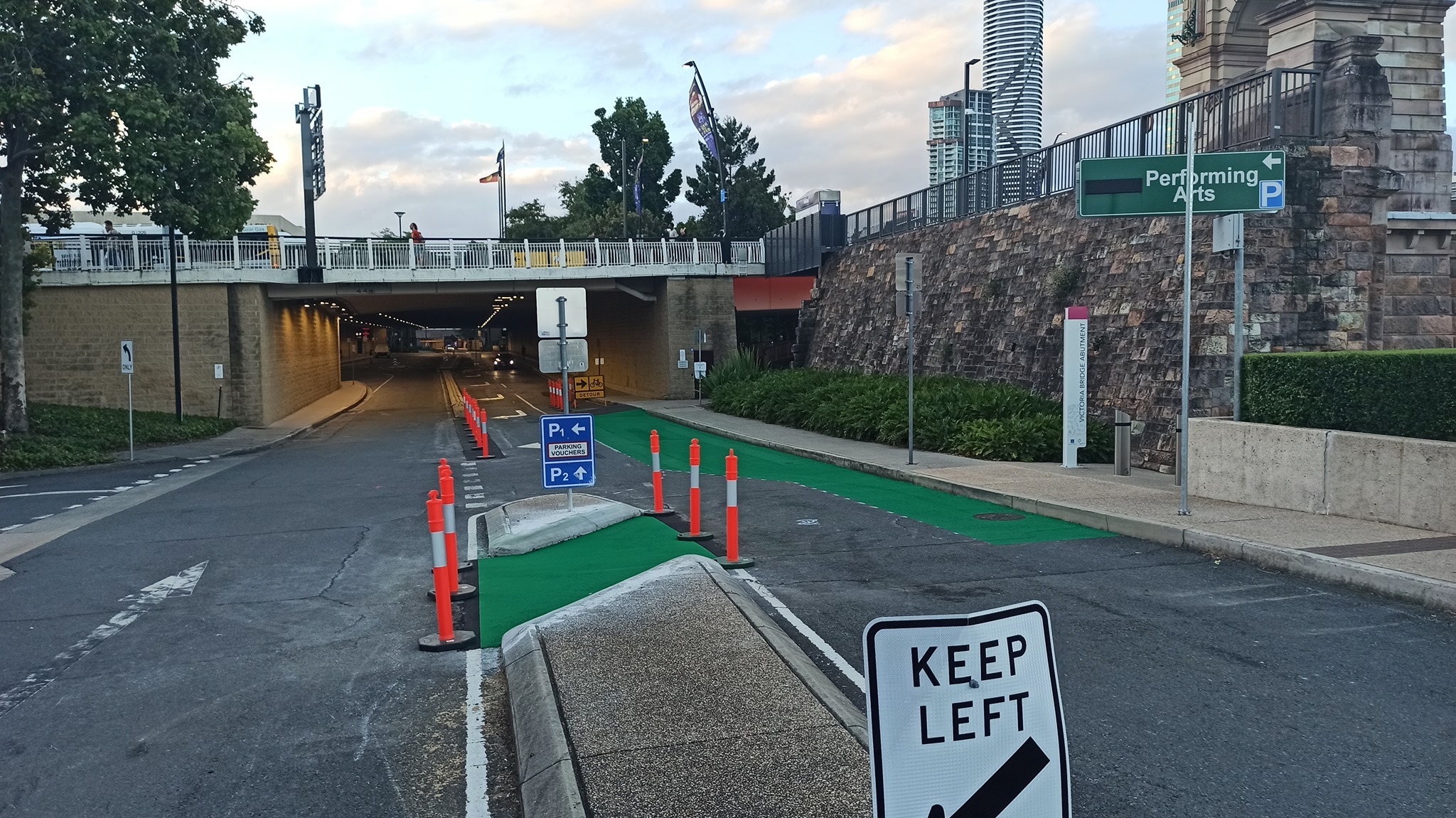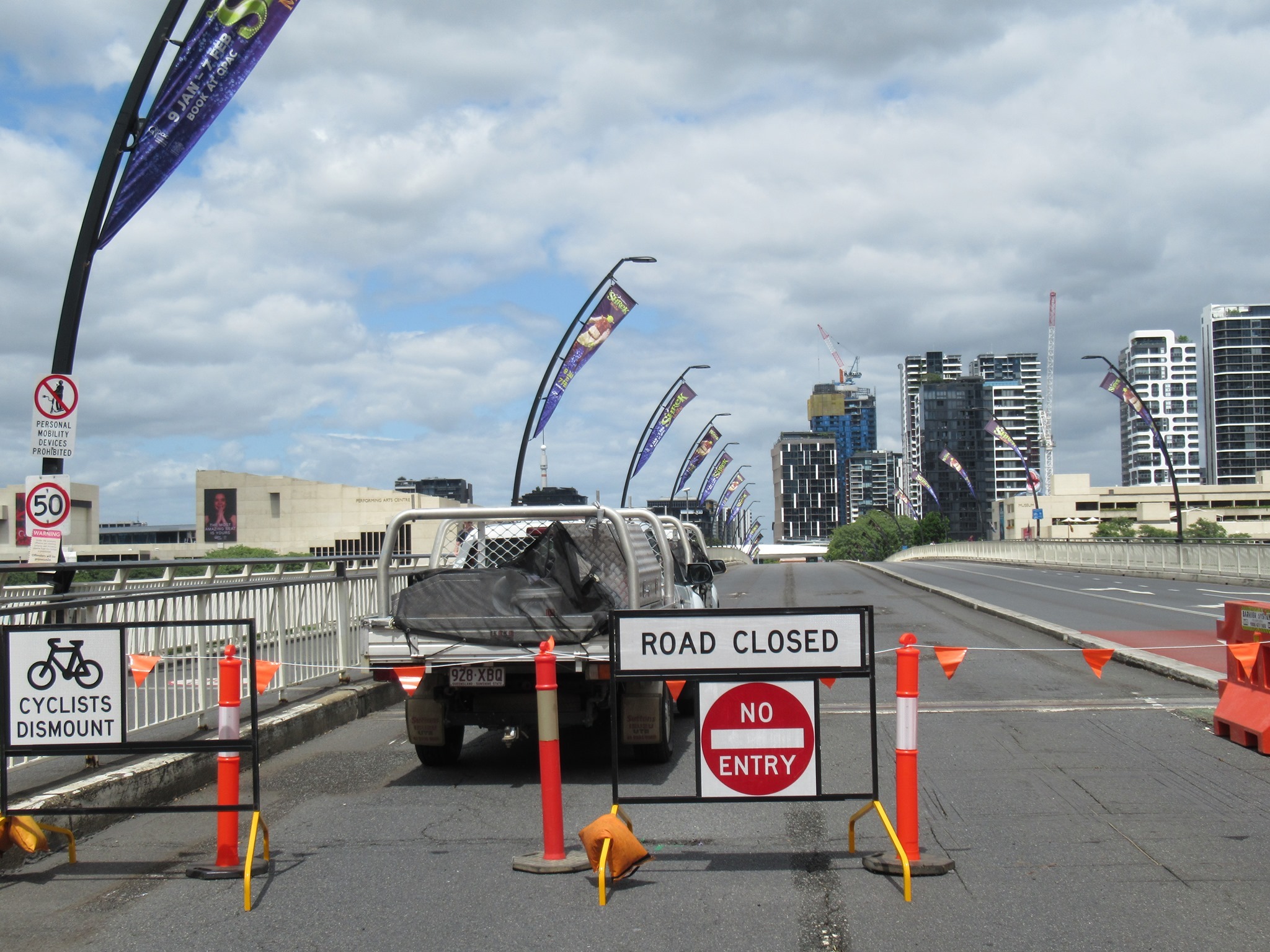 There was good news and bad news for cycling on Victoria Bridge this week: The good news is that the bad news is temporary. The main deck of the bridge is now closed to cycle traffic, so you will need to take a detour to the upstream shared path if you want to ride across. Of course the really good news is that work on the permanent dedicated cycleway being delivered as part of the Brisbane Metro project has begun! This is scheduled to be completed in March (early or late in the month depending on who you speak to).
