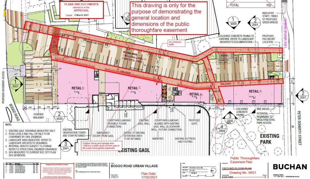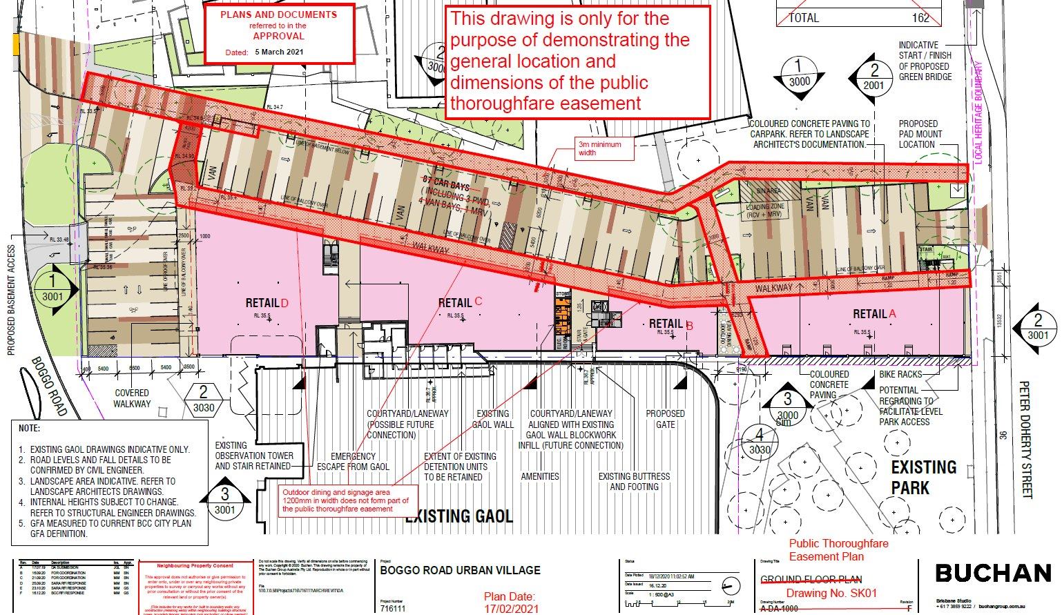 1) The public thoroughfare easement plan now requires a separated bikeway along the eastern edge of the site (next to the Eco Sciences precinct), with a minimum width of 3.0m.
