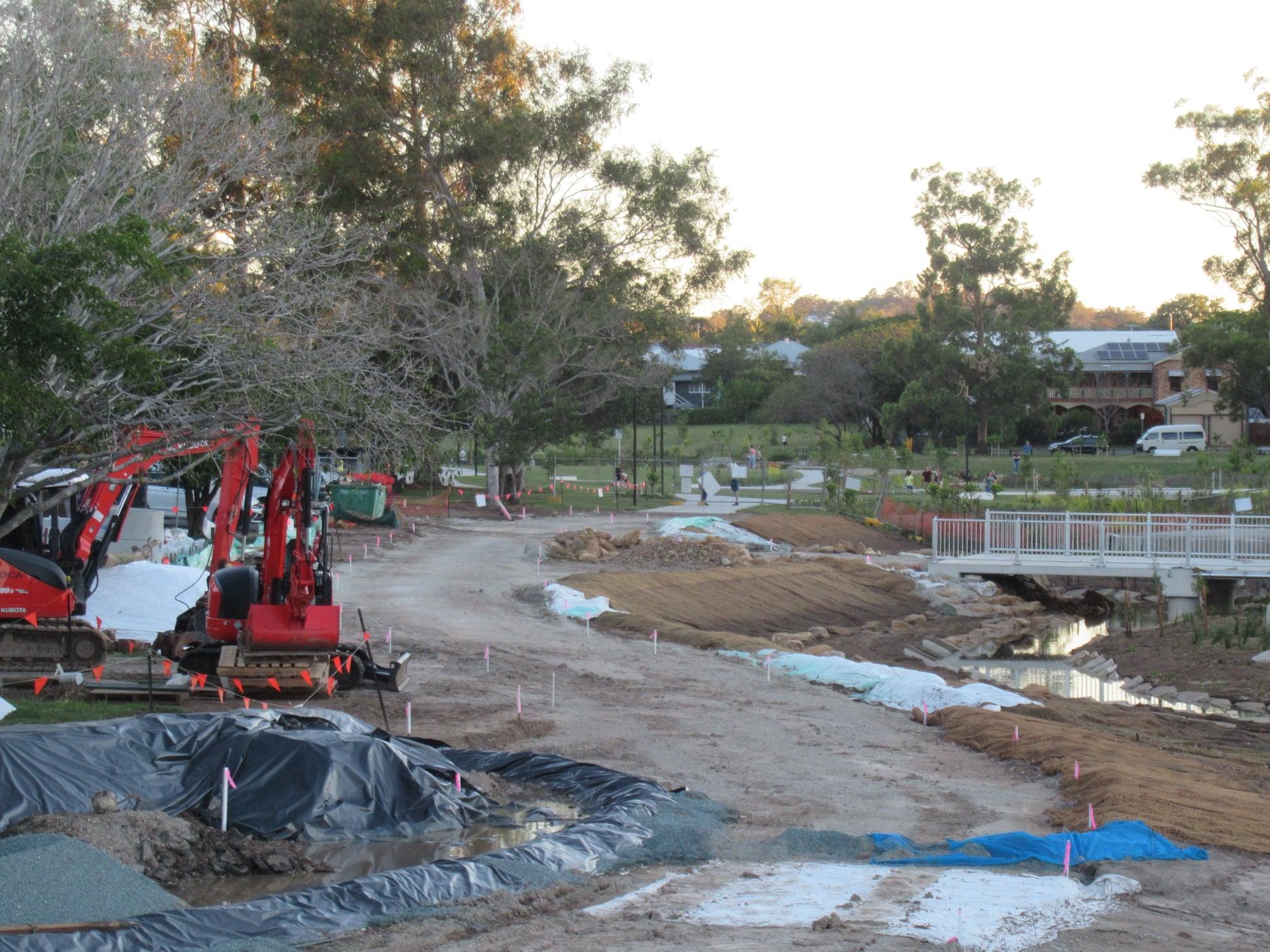 In the suburbs: Stage 3 of the upgrade to Hanlon Park at Stones Corner is looking good after this week’s heavy rain. This next stage will reinstate the Norman Creek Bikeway and finally connect it under Logan Road. We can’t wait!