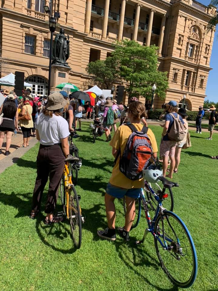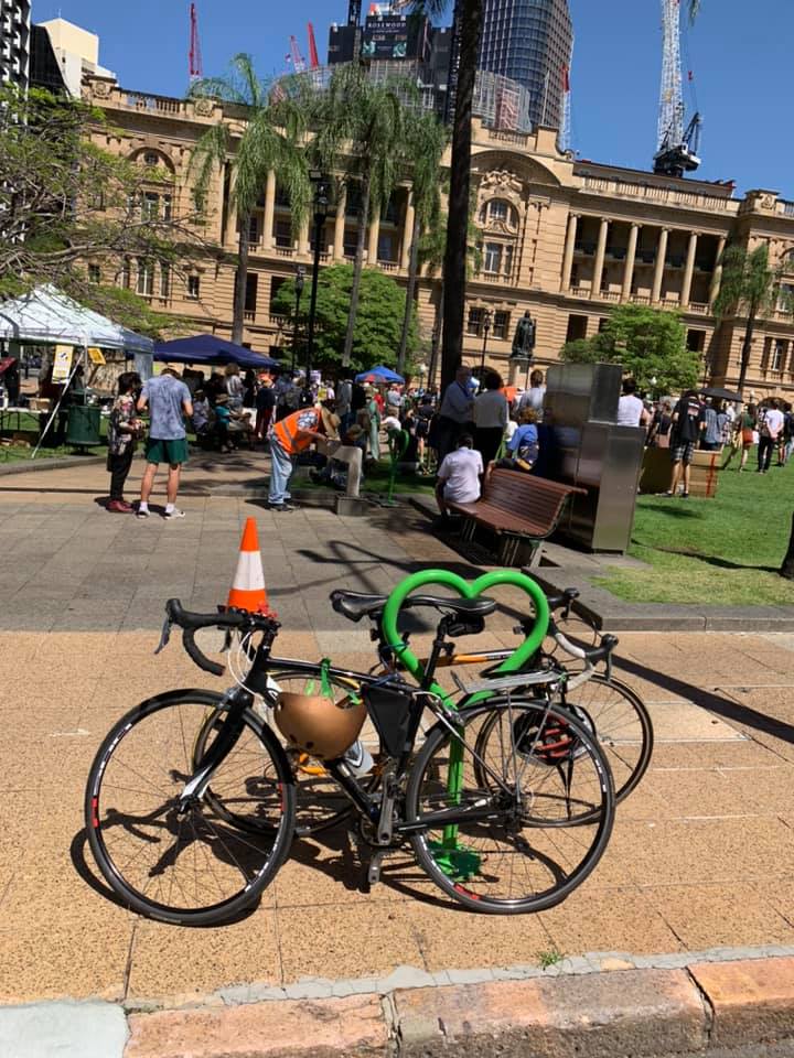 Bikes and social justice movements seem to go together. Check out the number of bikes at the School Strike 4 Climate Queensland in Brisbane on Friday. Not just marchers but the paramedics and police were on bikes too. It was great to see!