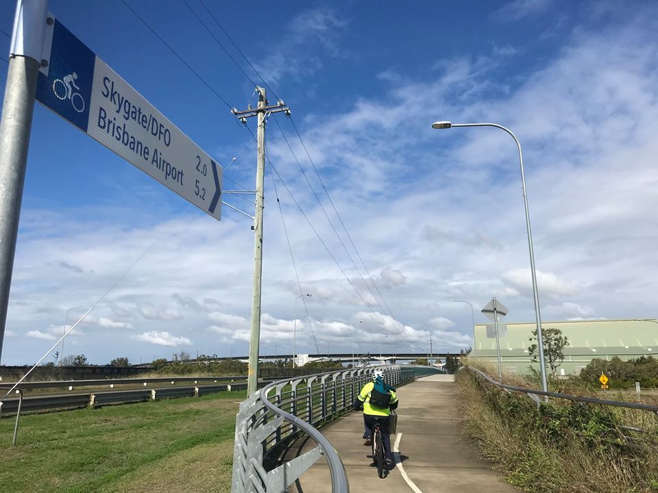 It’s a sign! There are now directional signs showing distance to the Brisbane Airport and Skygate precinct from the Kedron Brook Bikeway. Cycling is a good way to get to the airport – whether you’re travelling, working, or shopping there.