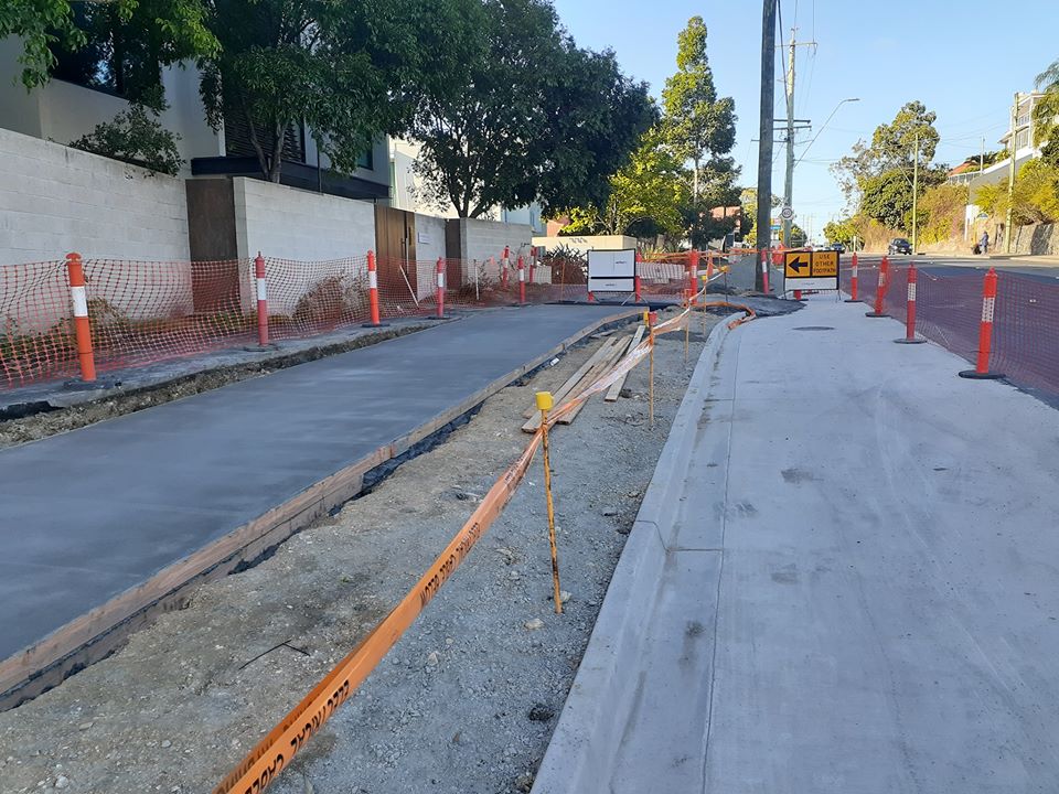 There’s better news from the west side, with West BUG reporting that the Indooroopilly Riverwalk is coming together nicely! They also tell us of an added bonus: if you wait for traffic control to let all the cars through, and you go after them – you can progress the length of Radnor Street without any car behind you or overtaking you!