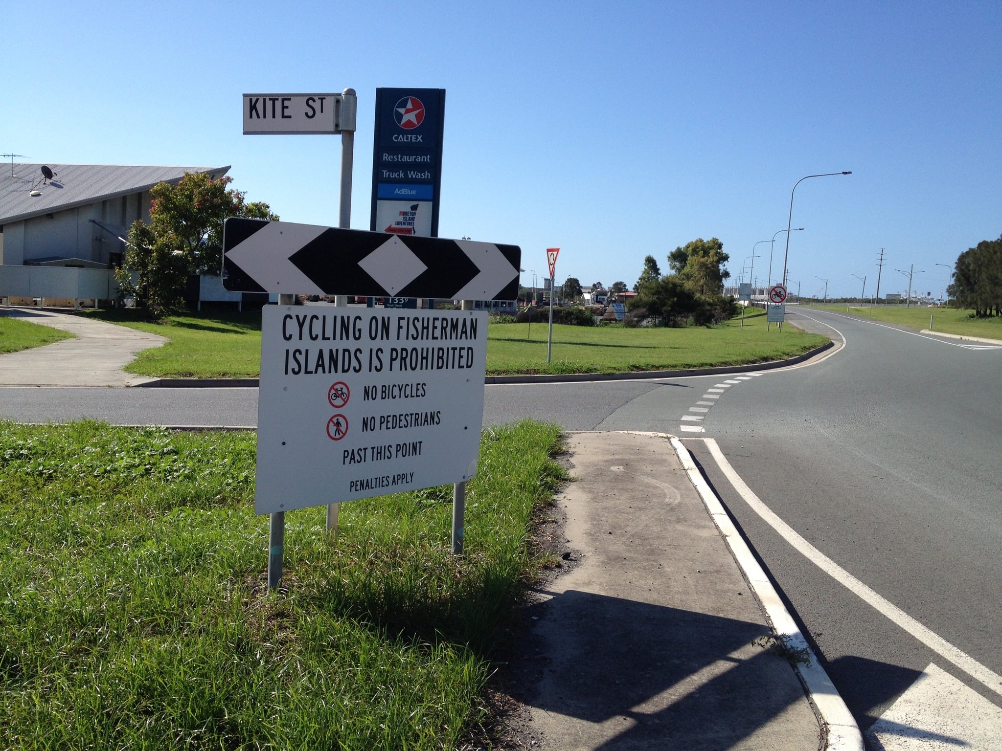 Although there is a cycleway along the latest section of the Port of Brisbane Motorway, it only takes you as far as the “end of trip facilities” at the Caltex truck stop – which consist of an outdoor bike rack and toilets/showers at the truck stop. (We’re not aware if there are lockers). Port workers would then need to get a lift in a motor vehicle onto the port facilities at Fisherman Islands.