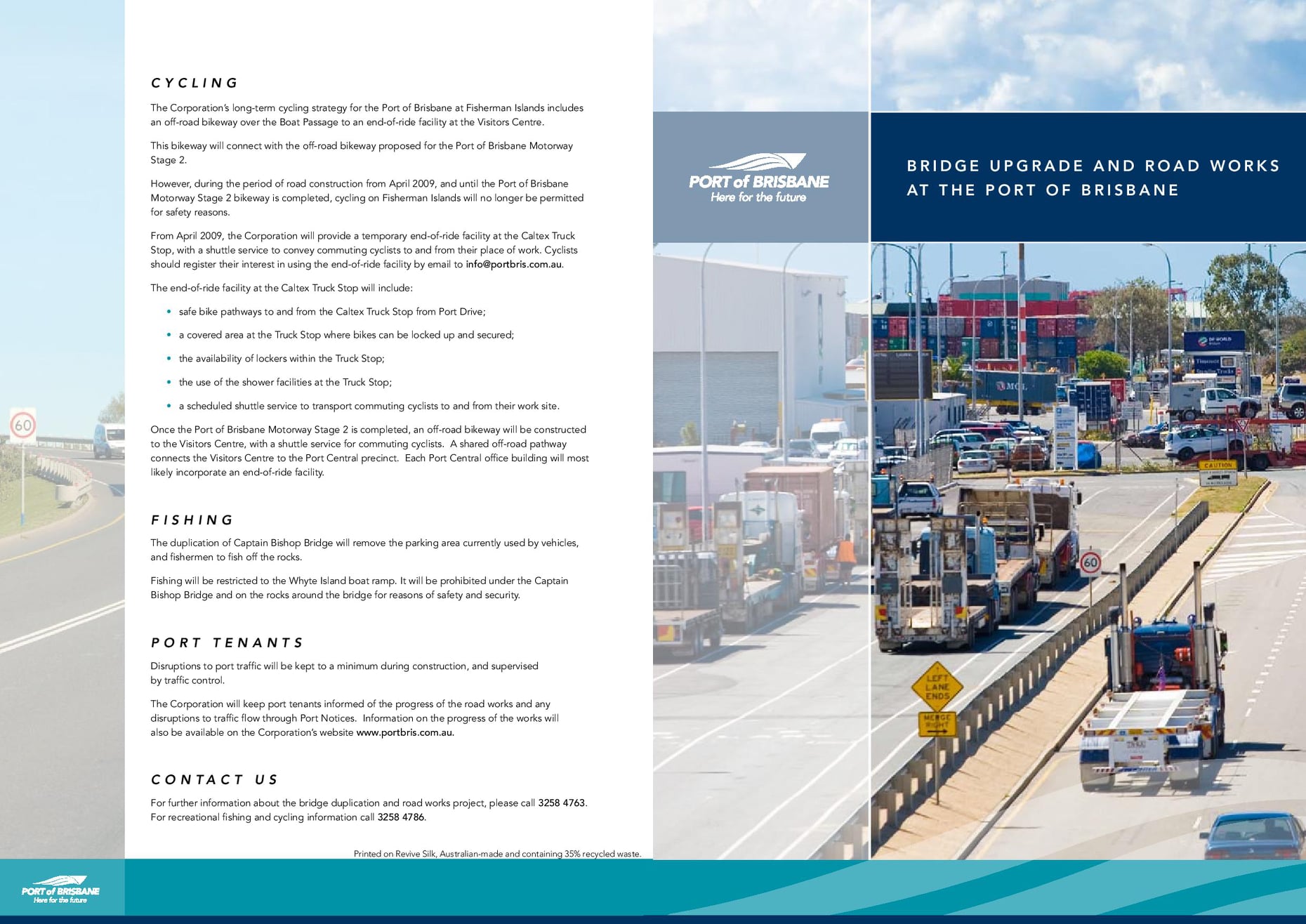 A brochure produced by the port at the time (before it was privatised in 2010) outlines future road projects as well as the cycle connections. Those road upgrades have now all been completed, but none of the cycleway connections. Nor do the Port have any plans to build the cycle connections.