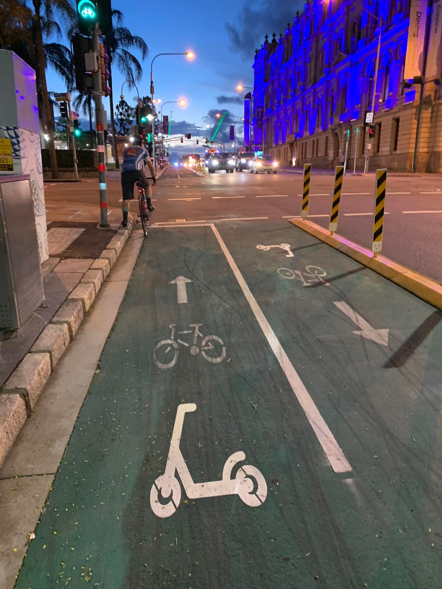 As quoted in this article, we welcome sensible use of e-scooters on bikeways, and it would be great to see stencils like those on the CityLink Cycleway added to other routes like the Gabba Bikeway and North Brisbane Bikeway.