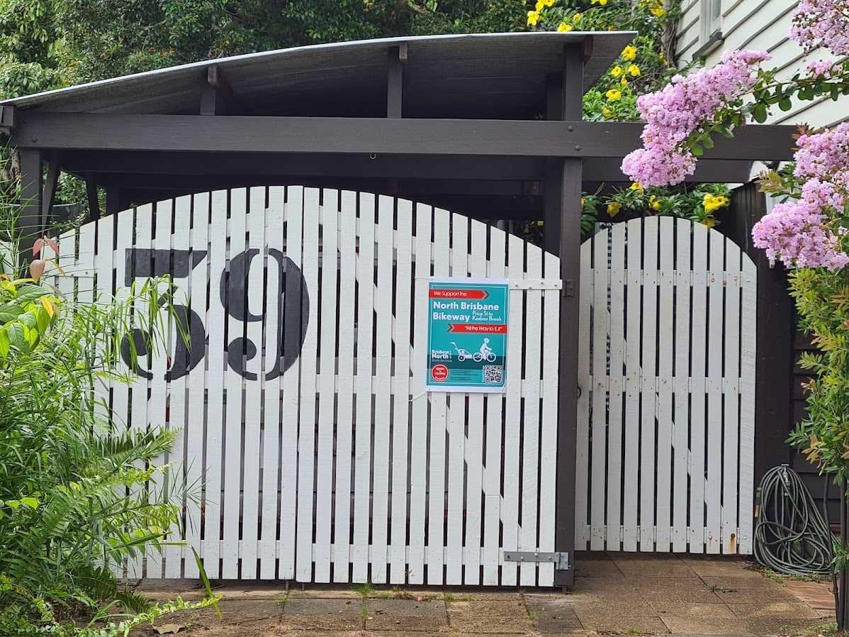 In the northern suburbs, it’s good to see that not all Clayfield residents along Keith, Sydney and Jackson Streets are opposed to the North Brisbane Bikeway connecting through to Toombul and the Jim Soorley and Gateway North cycleways. Some people are really keen for the benefits of good active transport connections, and have hosted signs in support of the North Brisbane Bikeway route through Eagle Junction. Far from thinking their neighbourhood needs “saving” from the scourge of people travelling by bicycle, many residents support climate action, safer streets, and healthier communities.