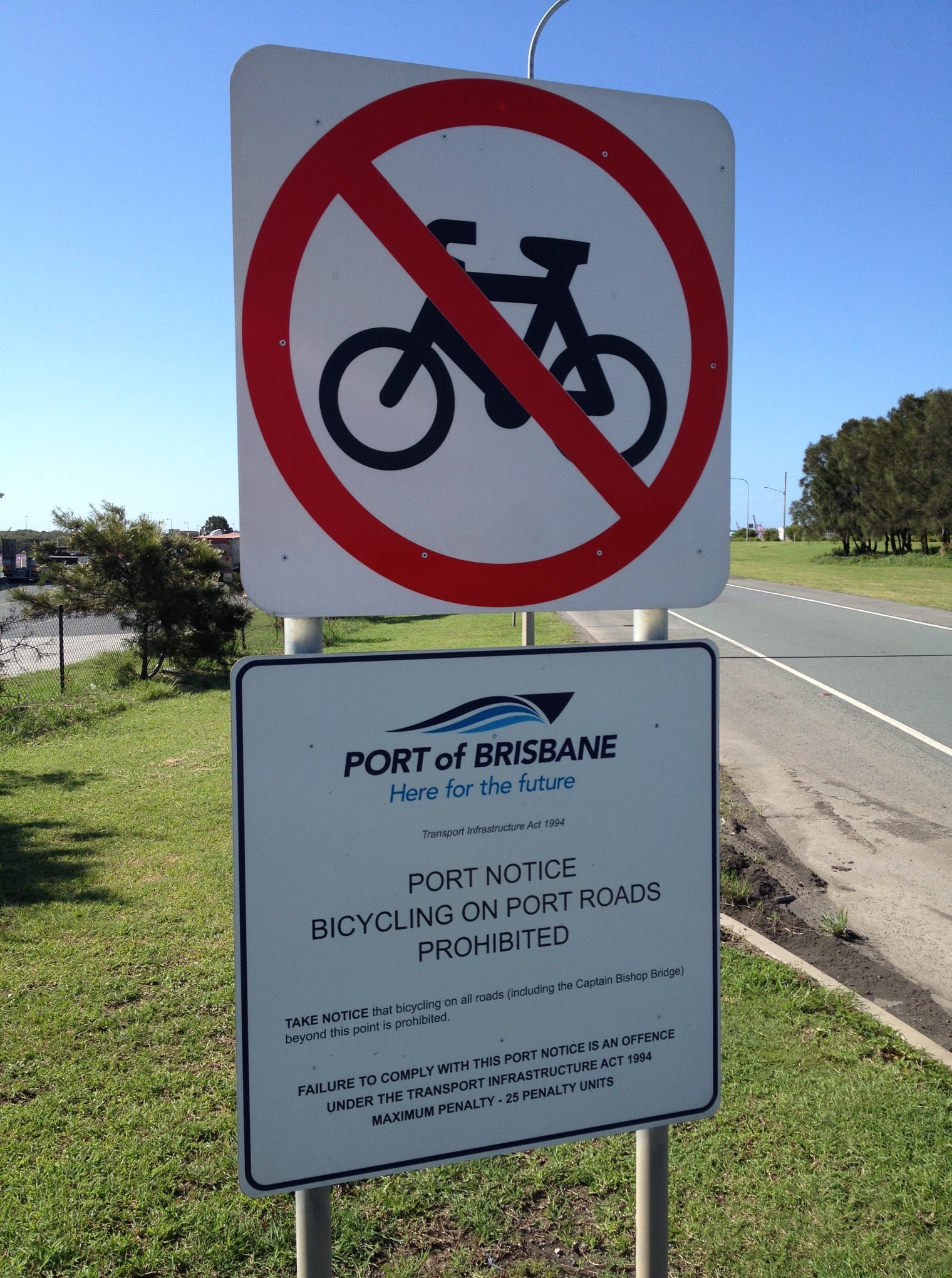Our protagonist has previously cycled to work at jobs in the same industry in NSW and WA, and is disappointed to discover how unfriendly Brisbane is for utility cycling. We agree; it’s a shameful abrogation of responsibility by the Queensland Government who are ultimately responsible for the Port of Brisbane even though it has been leased to a private corporation.