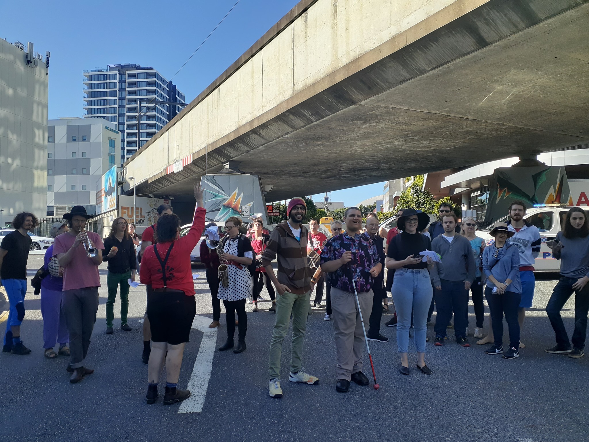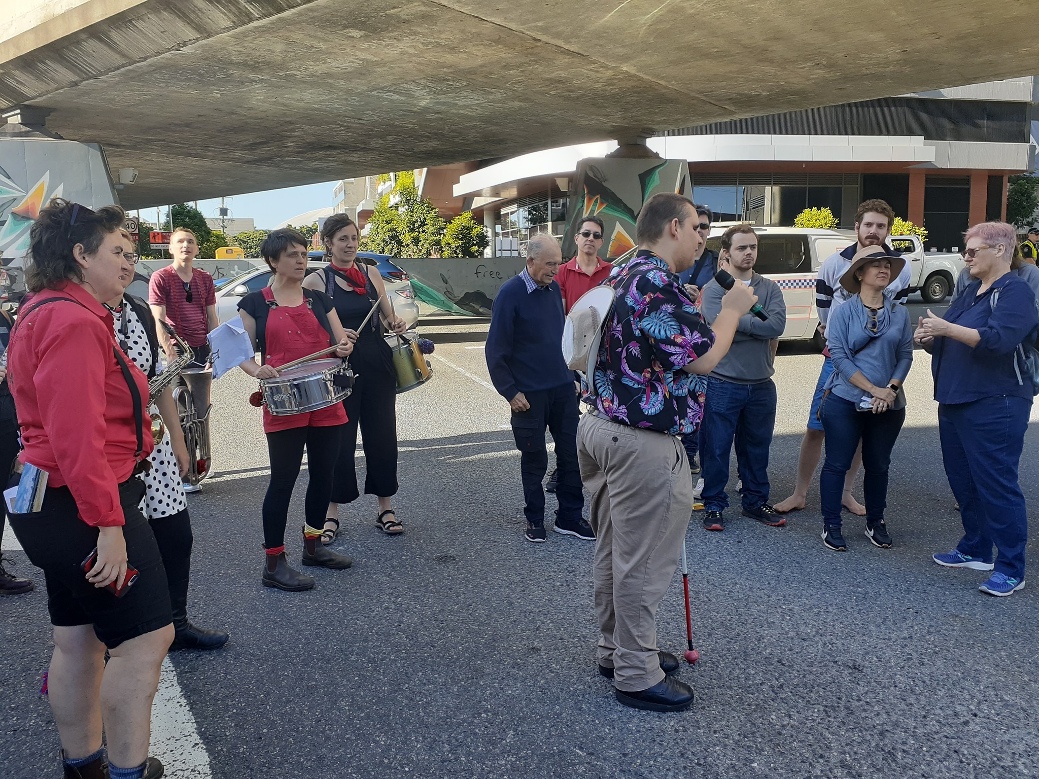 Thanks to Jonathan Sri, Councillor for The Gabba, Amy MacMahon MP for South Brisbane, and the awesome Riff Raff Radical Marching Band for supporting Brendon’s action. It should not take this sort of community action to get attention!