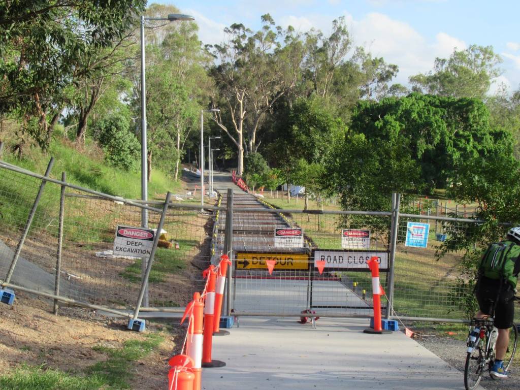 Over to the north side now, and North BUG report that there’s good progress being made at the Carseldine Urban Village, main access road. The road, bikeway and footpaths almost complete. Workers say they are aiming for a May 6th opening! The bikeway is on the eastern side of the road, so crossing Beams Rd to continue eastbound only requires one light crossing.