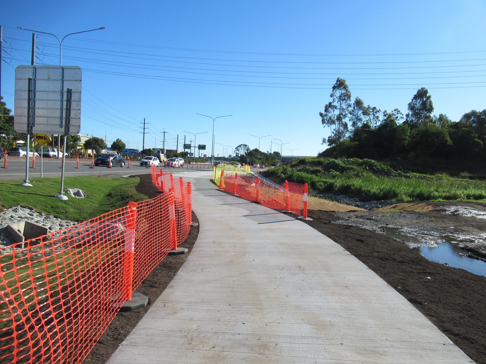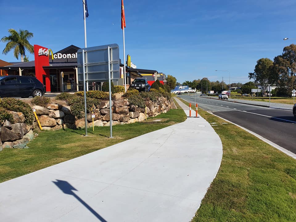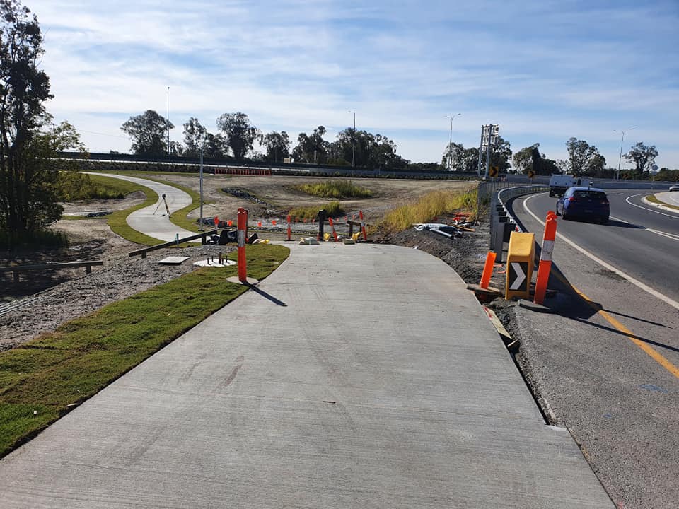 One of the last parts of the Ipswich Motorway Upgrade to be completed is a new shared path between the Oxley Creek underpass and McDonald’s, Oxley. Quite literally it ends at McDonald’s, and if you want to proceed to Bunnings or other local shops you’ll need to get onto Factory Road Loop. This last section of path will be open very soon.