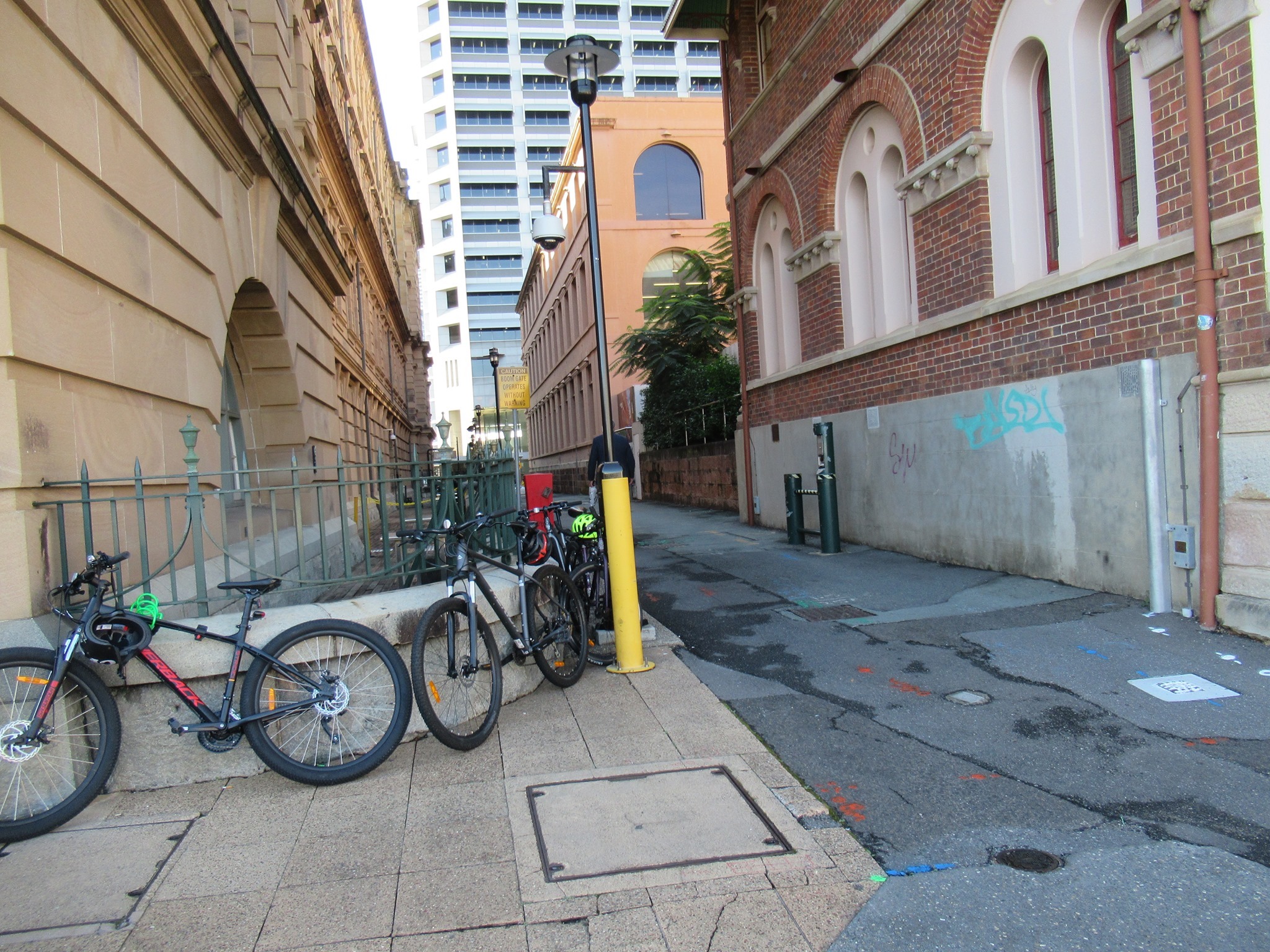 Stephens Lane has long been an important route for cyclists (and more recently scooter riders) as it provides a safe and direct route between William St and George St, and in particular enables riders to avoid some of the cyclist-hostile road environment on George St. George St is one-way only between Stephens Lane and Elizabeth St, and that stretch of footpath is compromised by the carpark driveway and staircase entry.