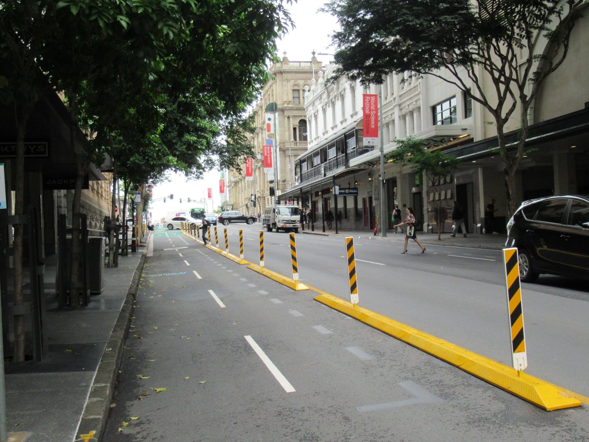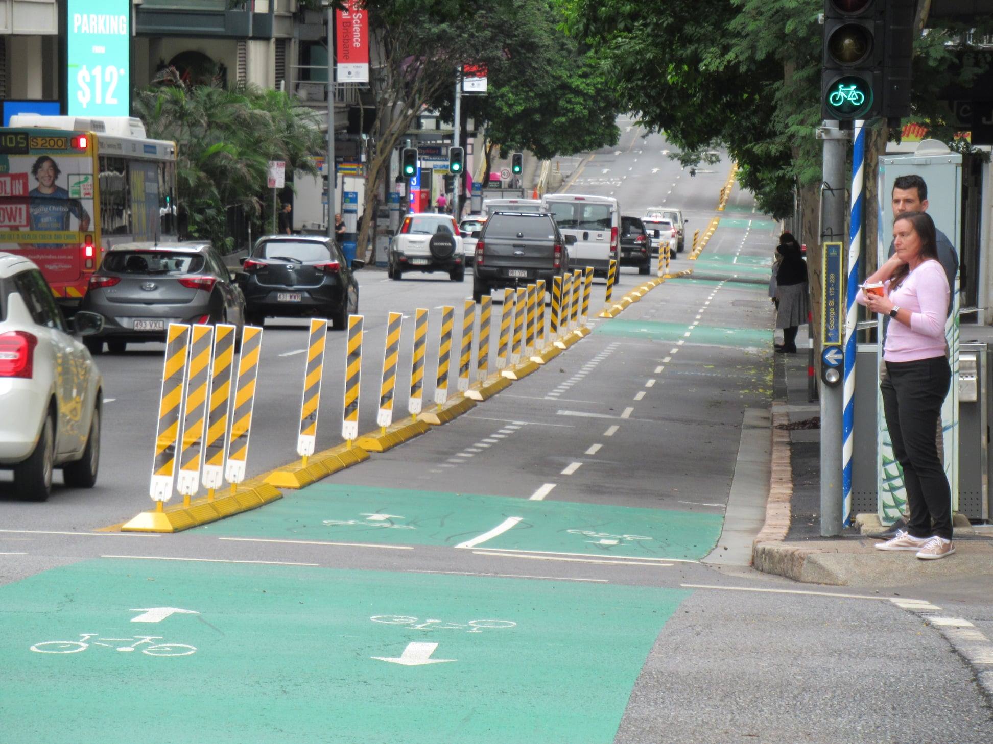 Since it opened on 29 January, there have been 13,000 bike trips on the protected cycleway on Elizabeth St near George St and 9,000 trips on the other end near Creek St. There have been over 3,000 trips on Edward St less than a month after it opened.