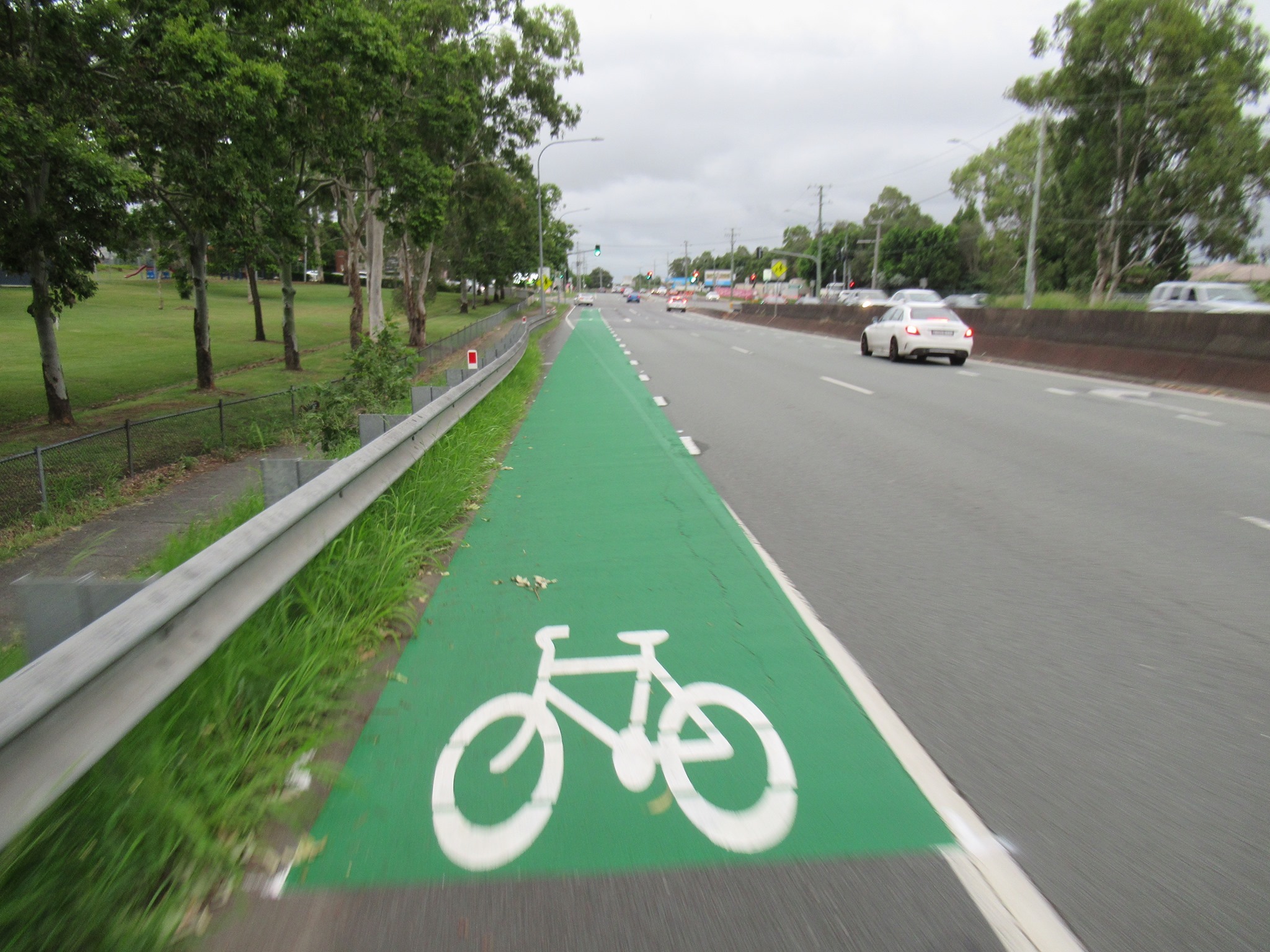 Nearby, after years of being the worst stretch of the ride from Brisbane to Logan and the Gold Coast, Logan Road south from the Gateway Motorway (and the current end of the Veloway at Eight Mile Plains) is about to get a lot friendlier for cycling. This will be great for local trips, even with the new Veloway running next to the Motorway, almost parallel. (Think of that as the express train, while Logan Rd serves local destinations).
