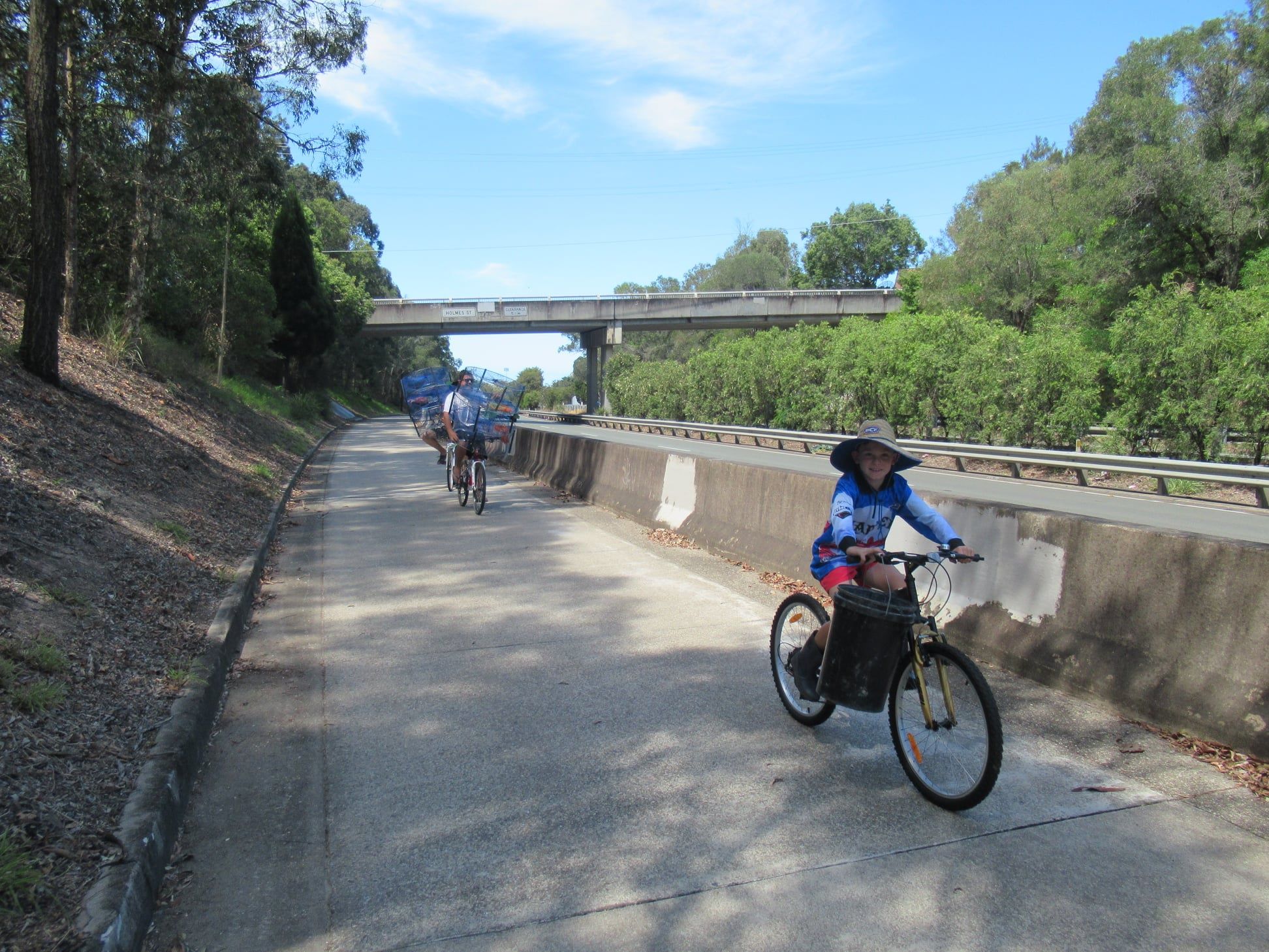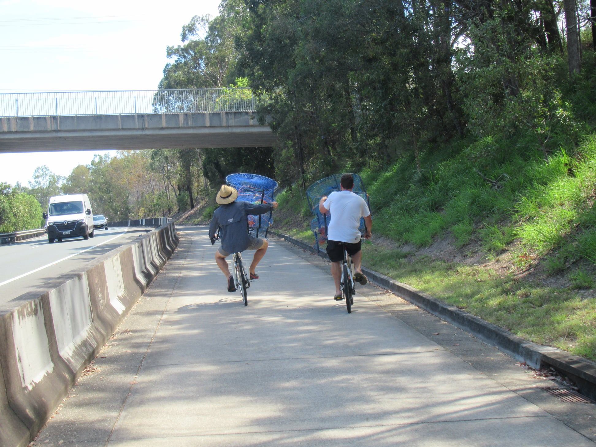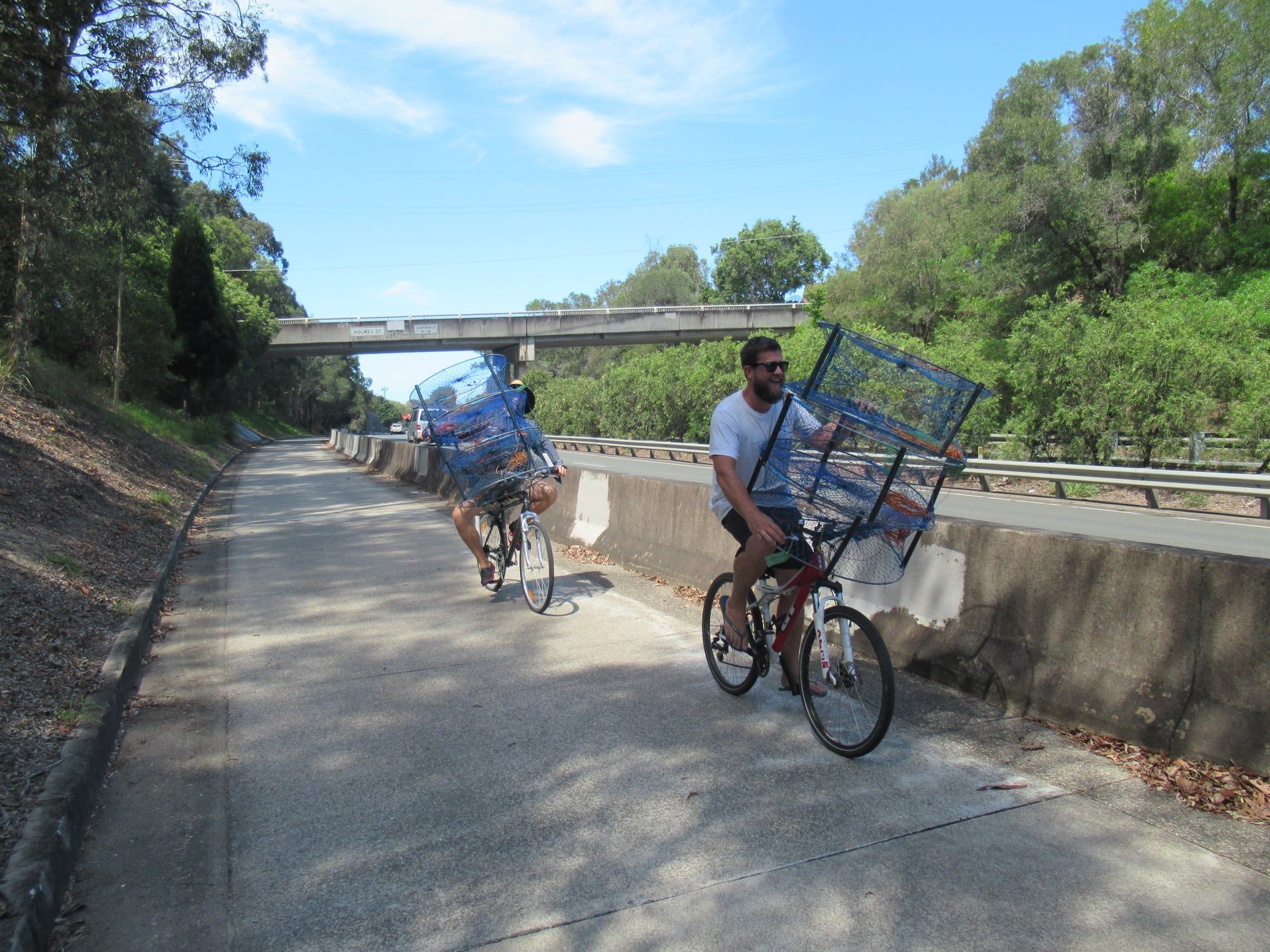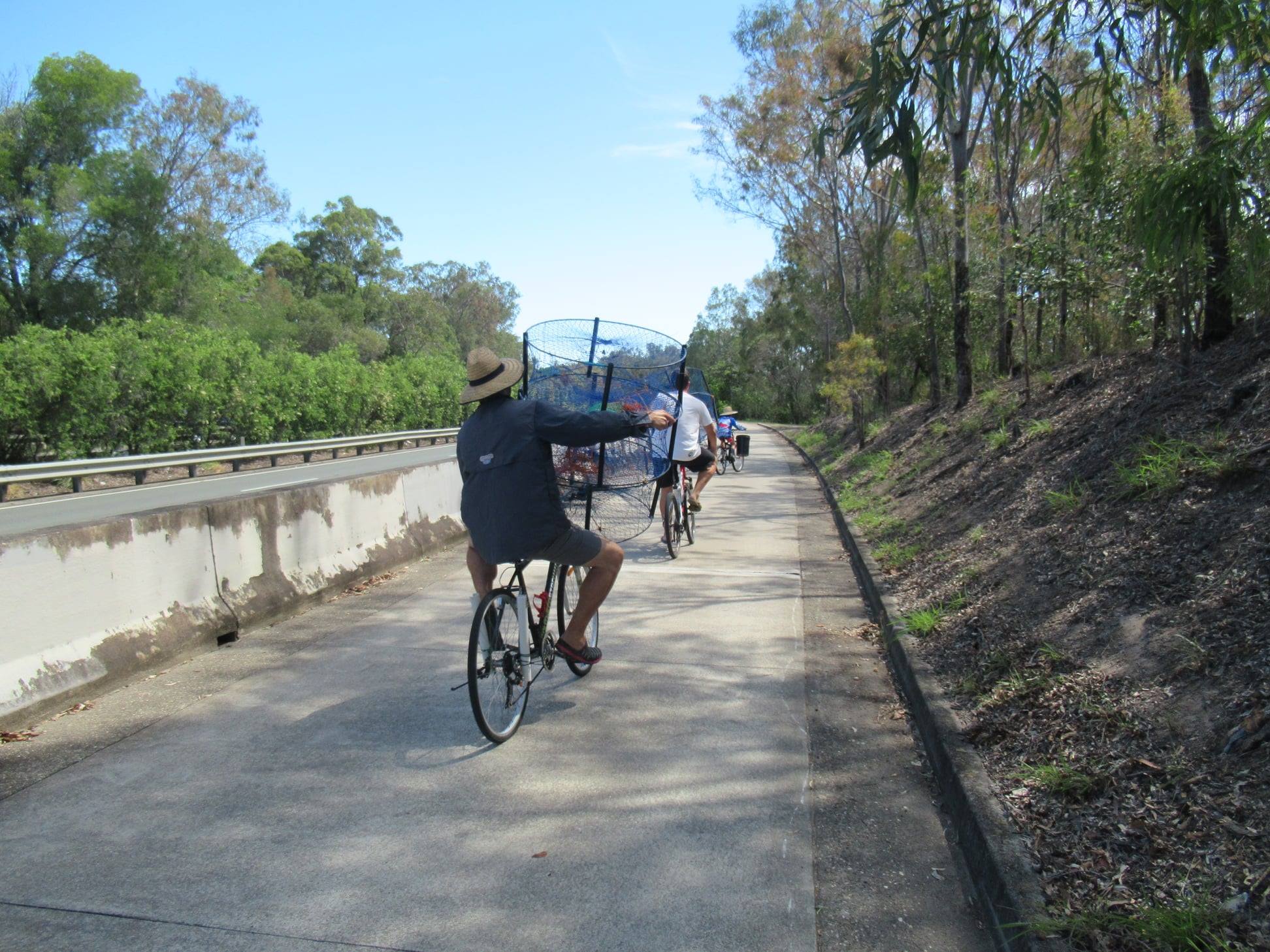 What’s the best way to transport crab pots and fishing gear? Bicycle of course! Spotted on the Deagon Deviation Bikeway at Brighton: