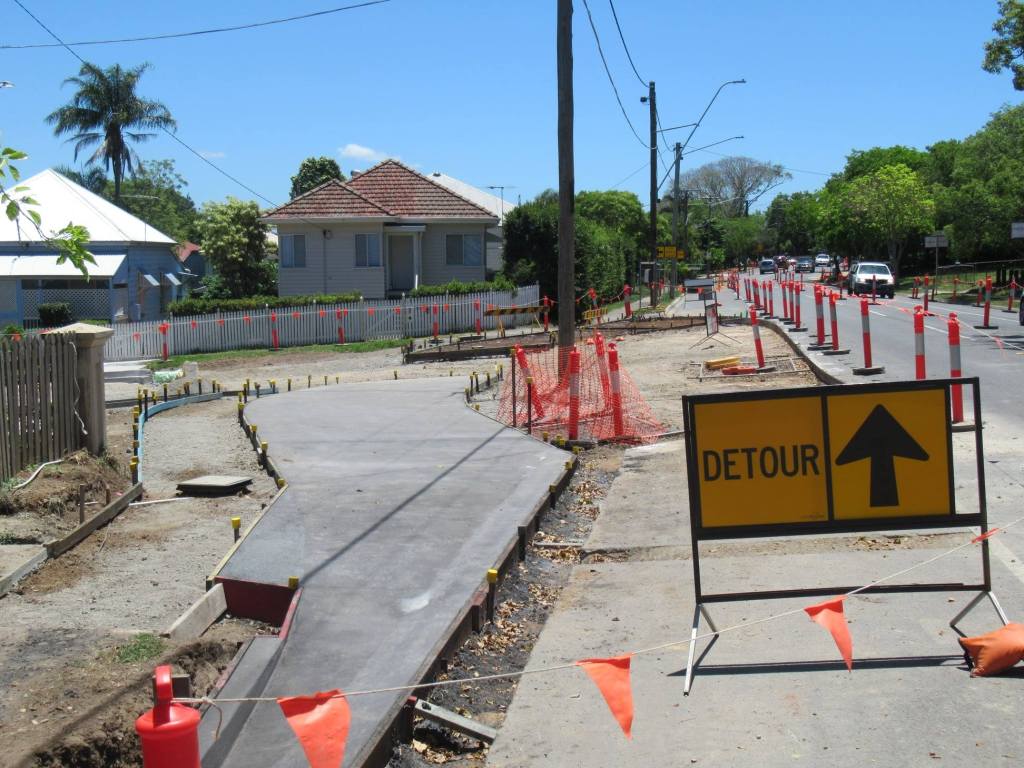 A previous “upgrade” of this intersection was completed in June 2014, replacing the four-leg roundabout with traffic lights to provide a signalised three-way intersection, which included a filtered right-turn movement from Sir Fred Schonell Drive into Coldridge Street. “The priority at the time was to improve traffic flow and address congestion… while also improving safety for road users, including cyclists and pedestrians.”