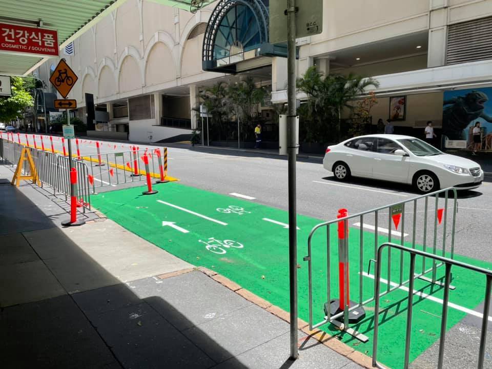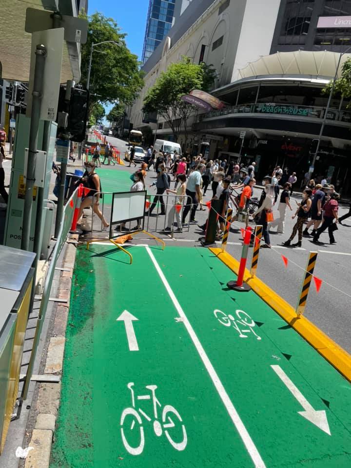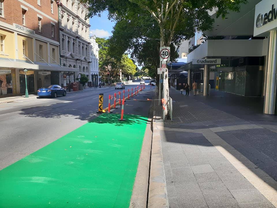The first sections of #FreshKermit and bumper barriers also appeared on Edward St, between Mary and Margaret Streets. This section of the CityLink Cycleway on Edward St (from Elizabeth St to the Botanical Gardens) is due for completion in mid February. How exciting!!
