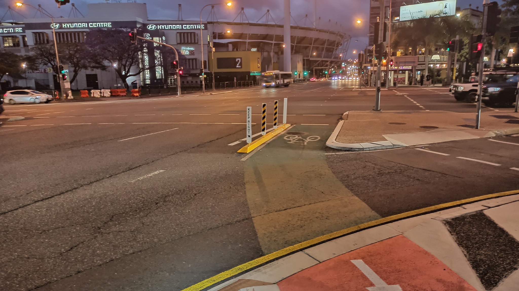 Do you think this new yellow barrier and row of flex posts will help stop drivers getting confused and driving on the Gabba Bikeway along Stanley St??