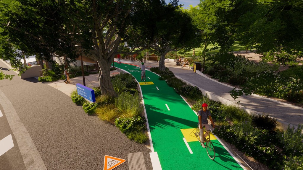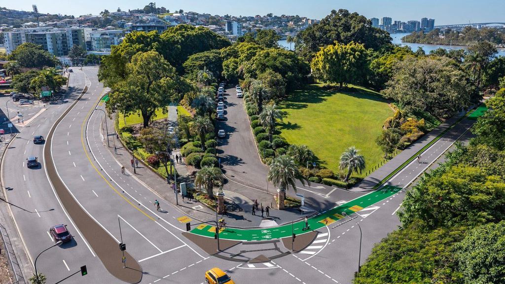 Brisbane City Council released the final designs for the Breakfast Creek Green Bridge this week. We think this is really well done; not only does it continue the Lores Bonney Riverwalk, providing separated space for people walking and those on bikes or e-scooters across the bridge, but it continues that separation along Breakfast Creek Rd and Newstead Ave to Newstead Tce. (From there you can choose to take the riverside path or continue on the road.)