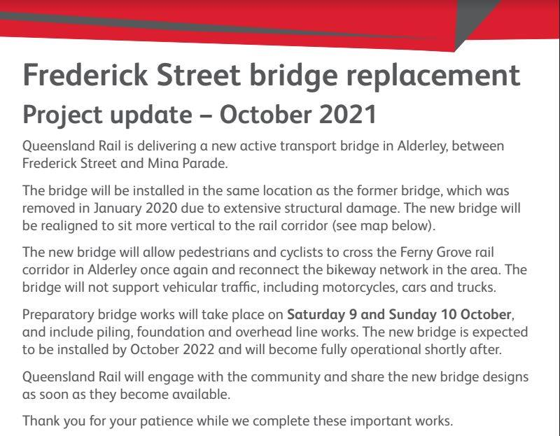 We’re very happy the bridge is being replaced, but a little disappointed that we can’t access any detailed plans, and have not had an opportunity to make recommendations with regards to the connections at either end of the bridge. Hopefully Queensland Rail and Brisbane City Council have been collaborating on this. (Or are we just being fanciful?)